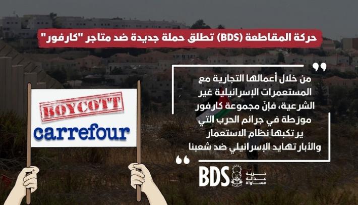 حملة لمقاطعة مجموعة متاجر “كارفور” الفرنسية، أطلقتها حركة المقاطعة في ديسمبر 2022 ردًا على توقيع المجموعة اتفاقية لافتتاح فروع لها في كيان الاحتلال.