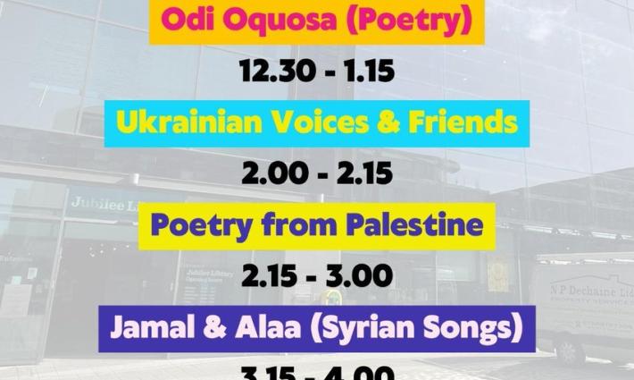 دعت حملة برايتون وهوف للتضامن مع فلسطين، لحضور أمسية فنيّة بمكتبة اليوبيل في برايتون، ضمن فعاليات أسبوع اللاجئين بمشاركة فنانين فلسطينيين وأصدقائهم، وذلك يوم السبت 24 يونيو الجاري، من الساعة 12:00 حتى 04:00 مساءً.