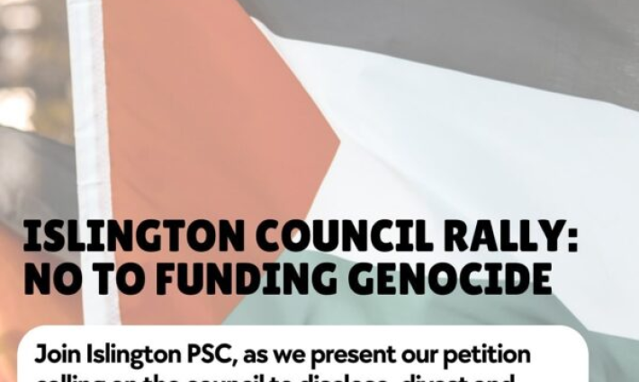 دعت حملة التضامن في إيسلينجتون-بريطانيا إلى المشاركة في المسيرة الداعمة لفلسطين والرافضة لتمويل الإبادة، وذلك في قاعة بلدية إيسلينجتون، شارع أبر، N1 2UD يوم الخميس 19 سبتمبر الساعة 6 مساءًن لتقديم عريضة تطالب المجلس بالكشف عن الشركات التي تستفيد من الهجمات الإبادة الجماعية الإسرائيلية على الفلسطينيين وسحب استثماراتها ومقاطعتها