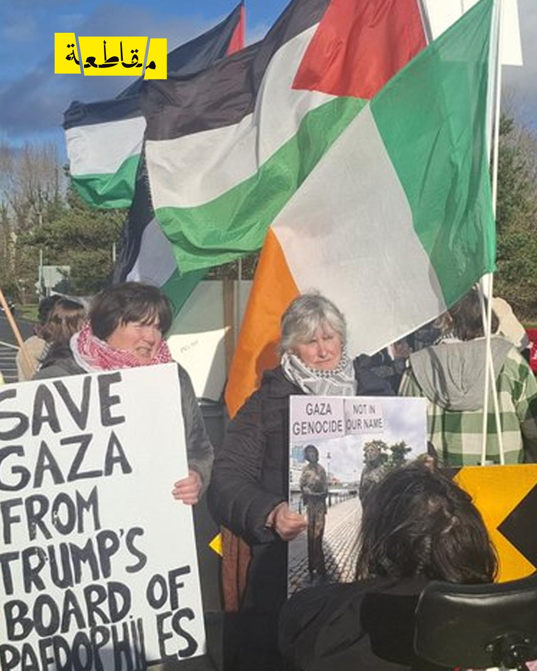 وأكد المتظاهرون، الذين شاركوا في النشاط الأسبوعي ضمن حملة مستمرة، على ضرورة إصدار قانون الأراضي المحتلة في أيرلندا لحماية حقوق الفلسطينيين ووضع إطار قانوني لمعاقبة الشركات والدول الداعمة للاحتلال.