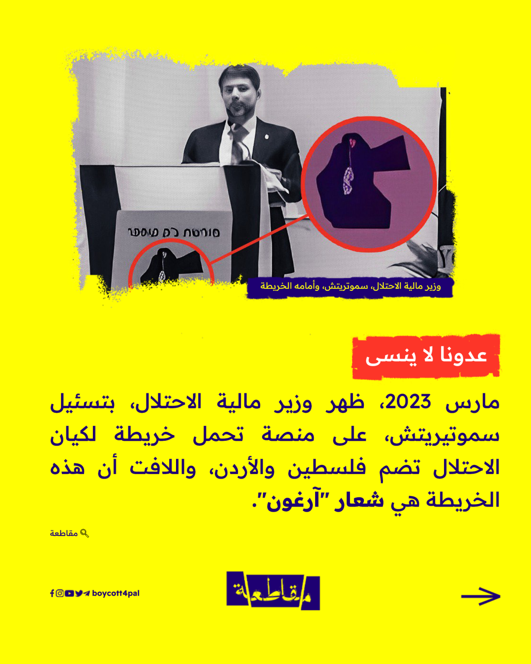 هل تذكرون الشعار الذي ظهر على منصة مؤتمر لوزير مالية الاحتلال قبل شهور، ويضم خريطة للكيان تشمل فلسطين والأردن وأجزاء من سوريا والسعودية؟