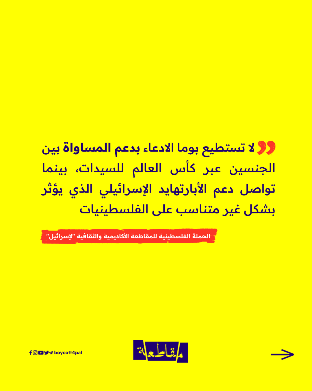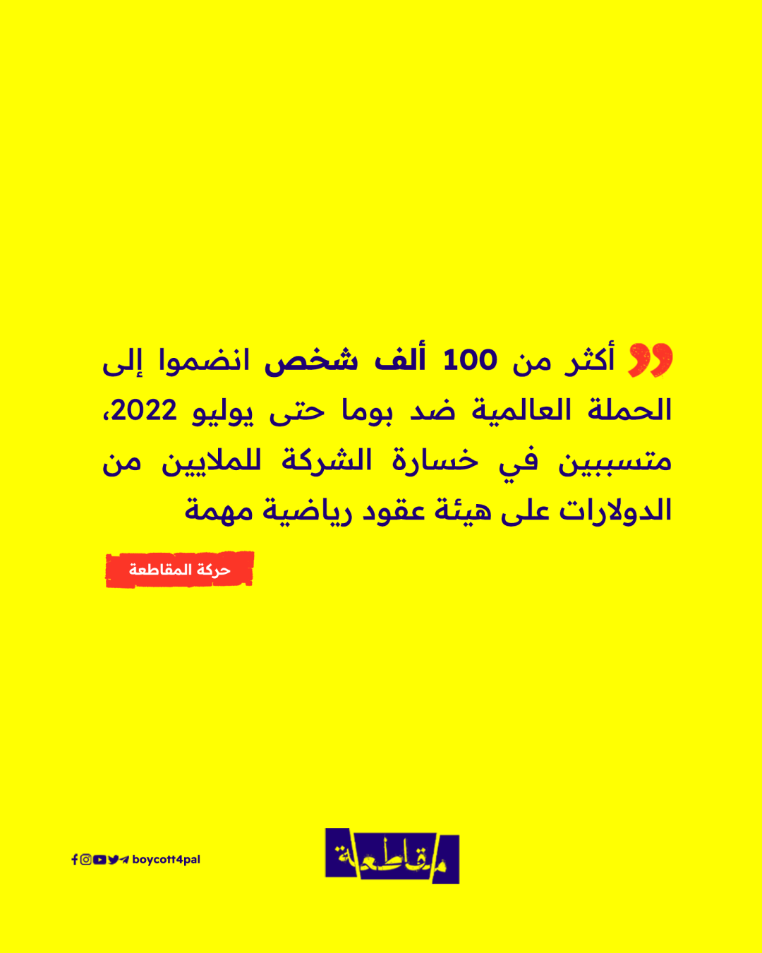 بينما تسعى الشركات الدولية للترويج لعلامتها التجارية خلال البطولات العالمية، باتت هذه المحافل فرصة للدعوة المستمرة إلى مقاطعة شركة "بوما"، ولعل هذا ما أثبته كأس العالم للسيدات، والذي انطلق مؤخرًا وسط دعوات للعمل ضد "بوما"، على غرار حملات المقاطعة في "الفيفا" لعام 2022.