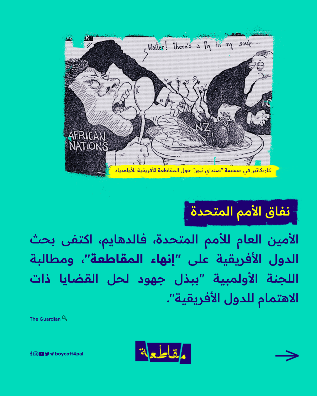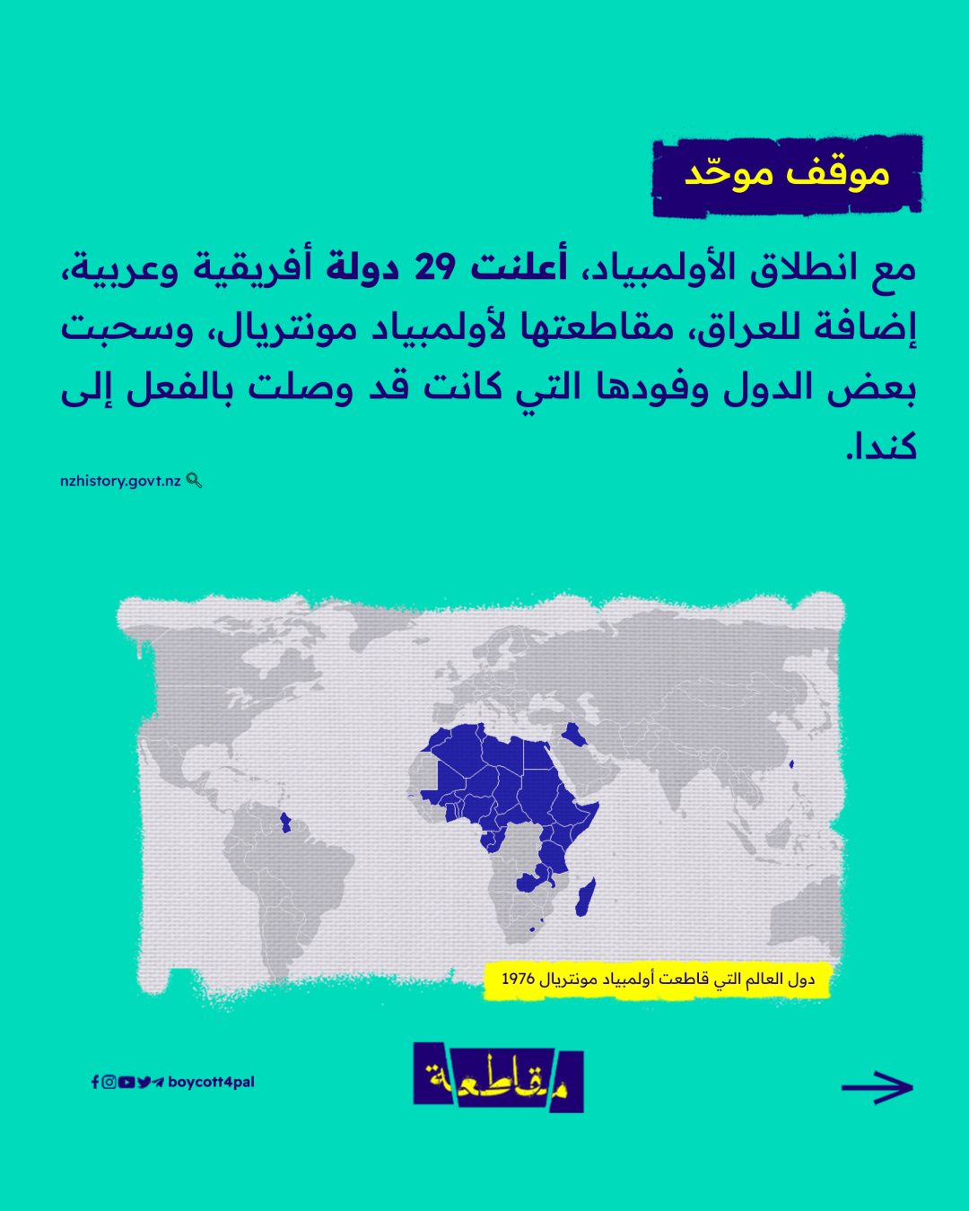 في ذلك العام، تجاهلت اللجنة الأولمبية الدولية مطالب الدول الأفريقية باستبعاد نيوزيلندا من أولمبياد مونتريال، بعد تحديها قرار الحظر الأممي على نظام الفصل العنصري في جنوب أفريقيا.