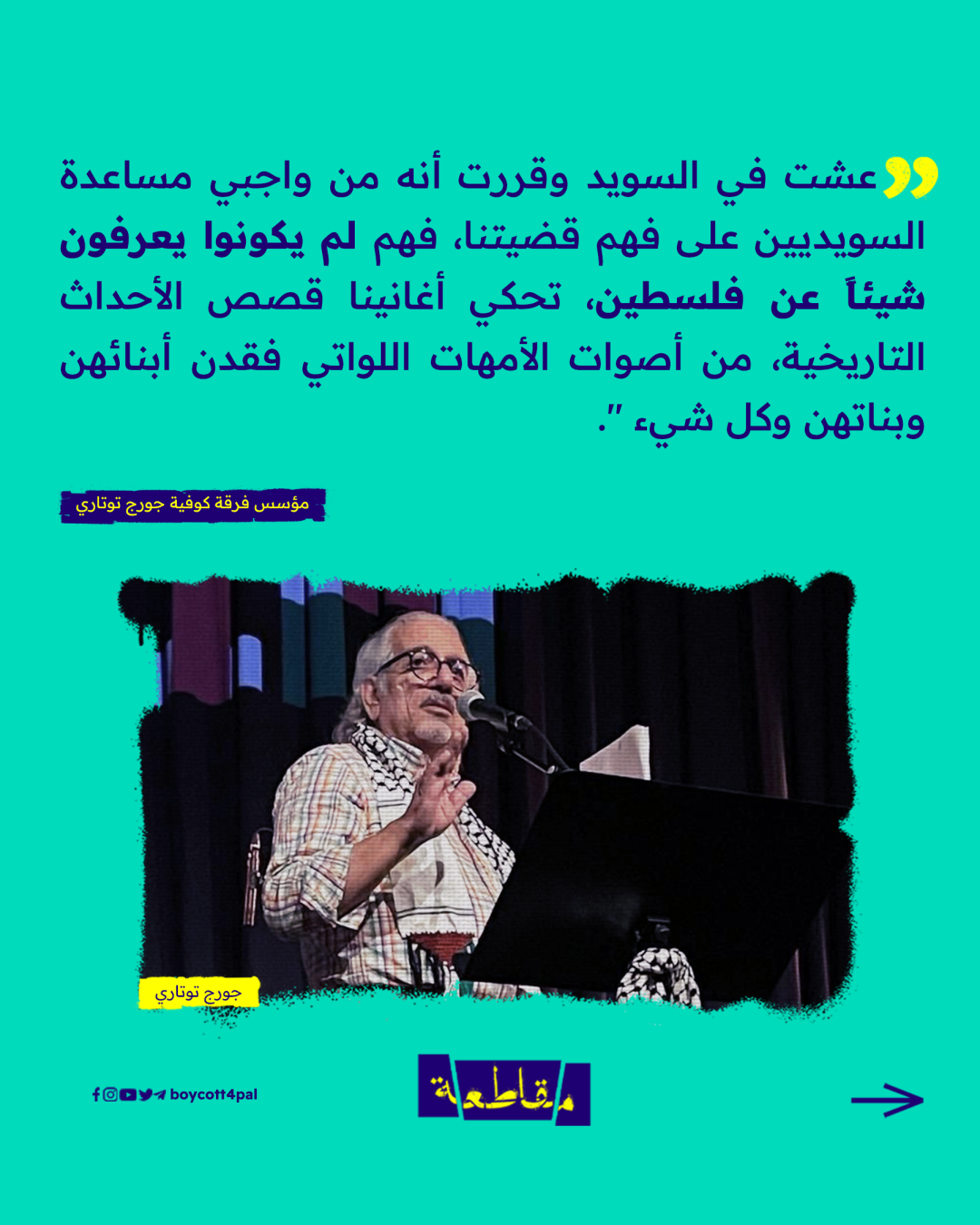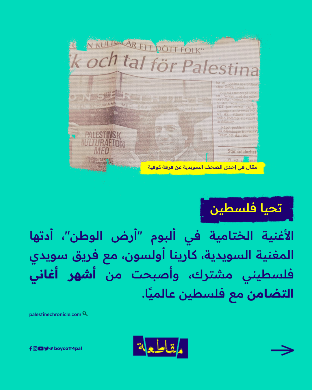 لابد أنكم قد سمعتم ذات مرة كلمات هذه الأغنية الثورية السويدية الأكثر انتشارًا في الفعاليات التضامنية مع فلسطين في أوروبا وحول العالم.