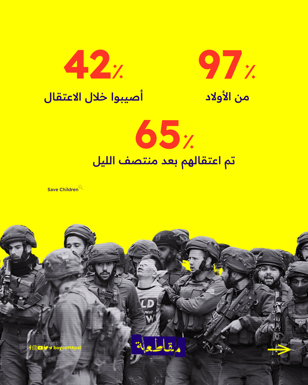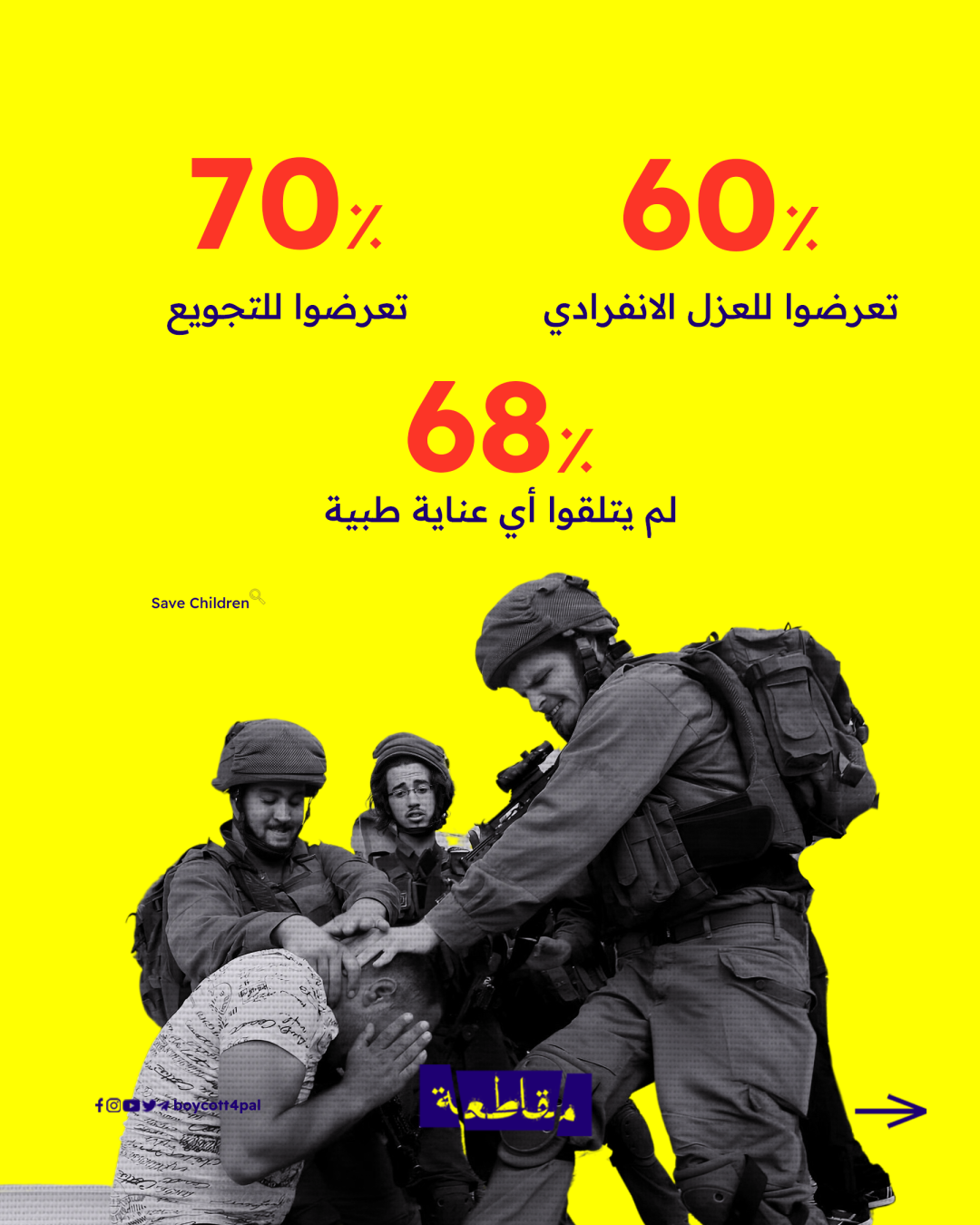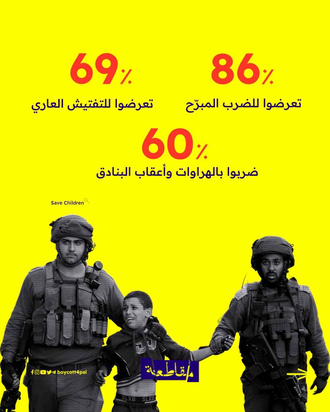 منظمة "Save Children" الدولية، بعد مسح أجرته على 228 طفل فلسطيني تعرضوا سابقًا للاعتقال في سجون الاحتلال.