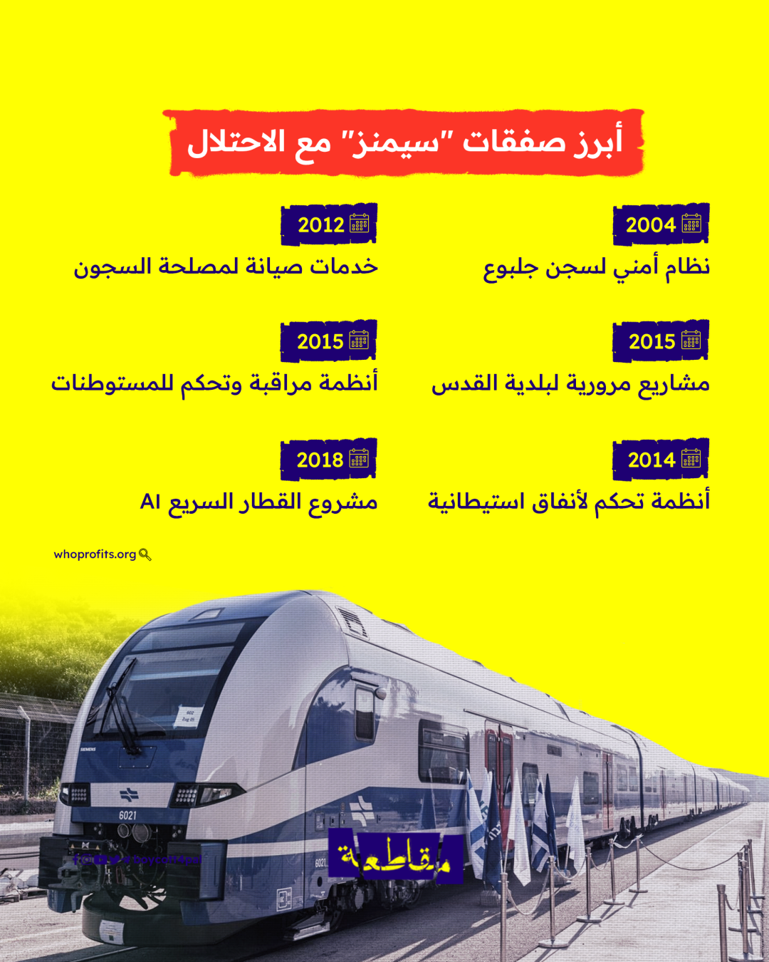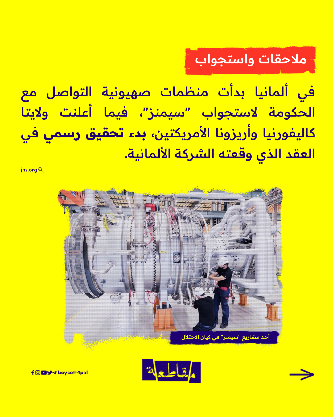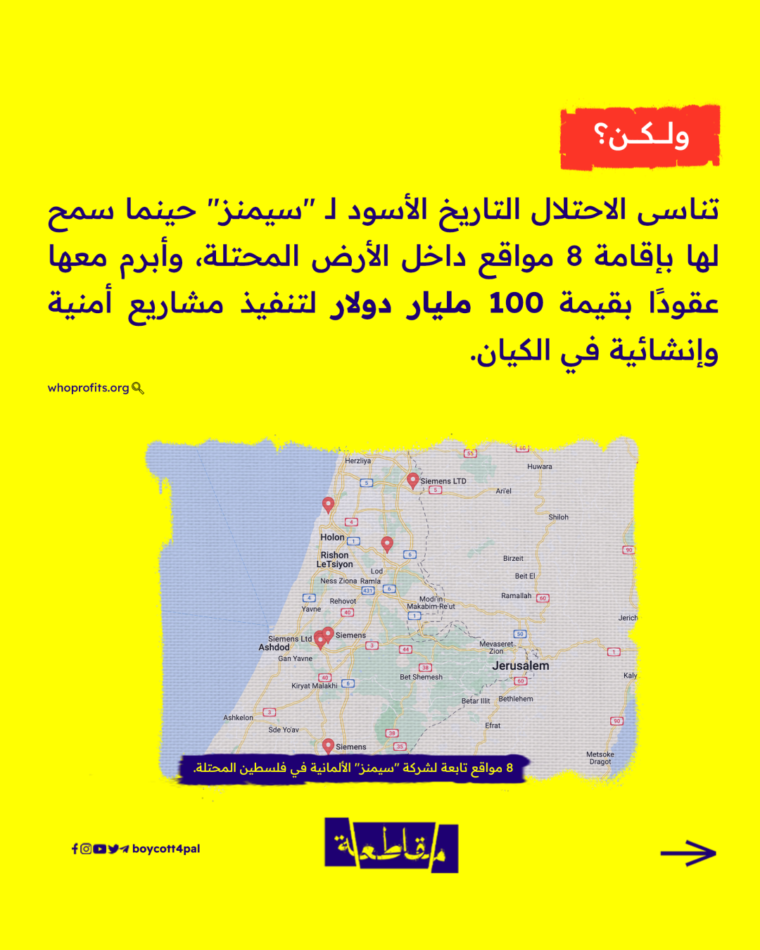كيان الاحتلال ذاته الذي تعمل فيه "سيمنز" منذ عقود، وأسند لها مشاريع بالمليارات.
