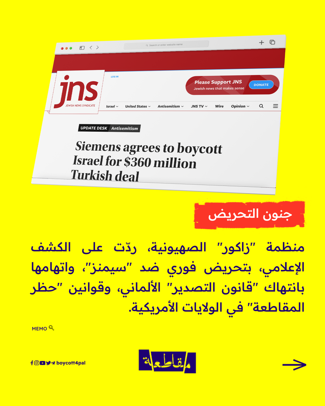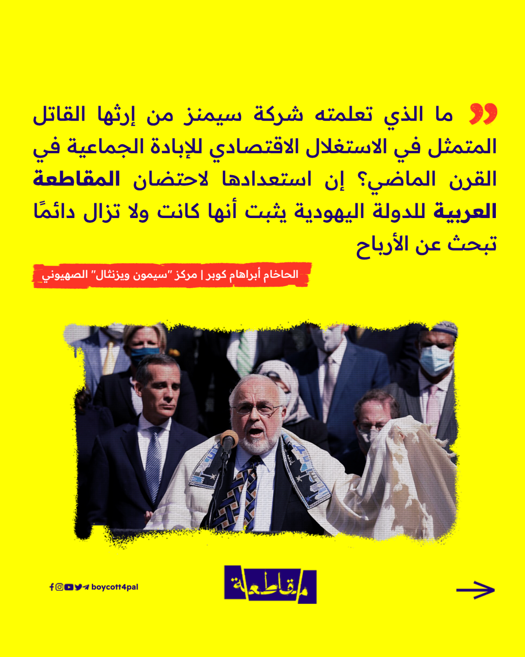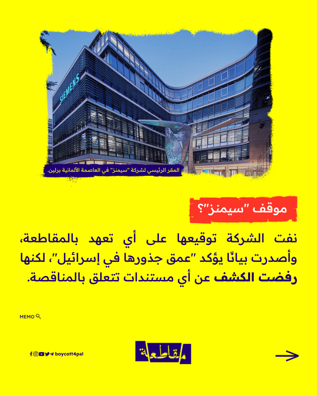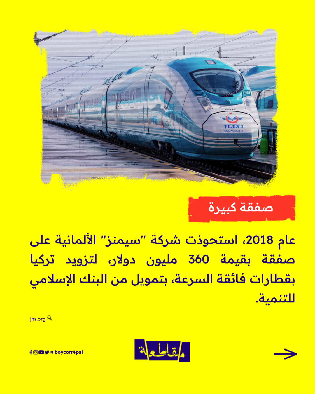 كيان الاحتلال ذاته الذي تعمل فيه "سيمنز" منذ عقود، وأسند لها مشاريع بالمليارات.