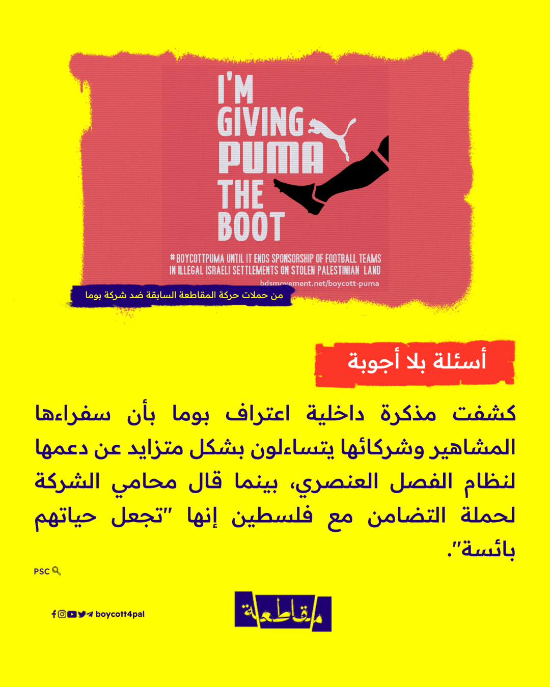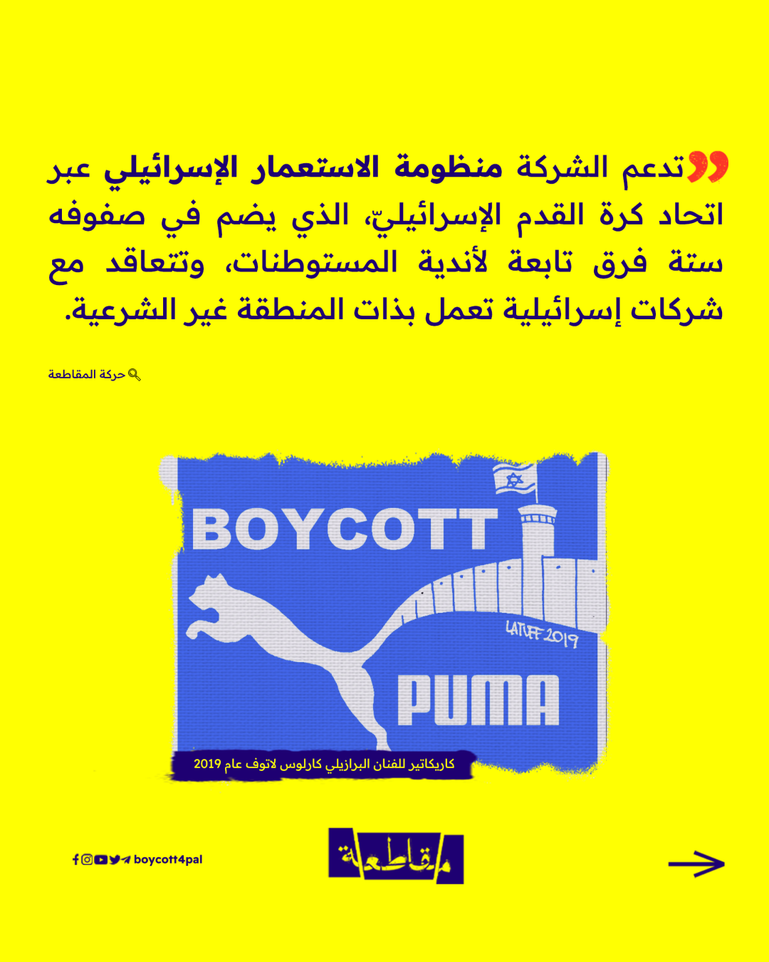 لنعاقب بوما التي تزعم انحيازها للإنسان وحقوقه، وتتجاهل هذه الحقيقة حينما يتعلق الأمر بالفلسطينيين، وتختار دعم الاحتلال ورعايته
