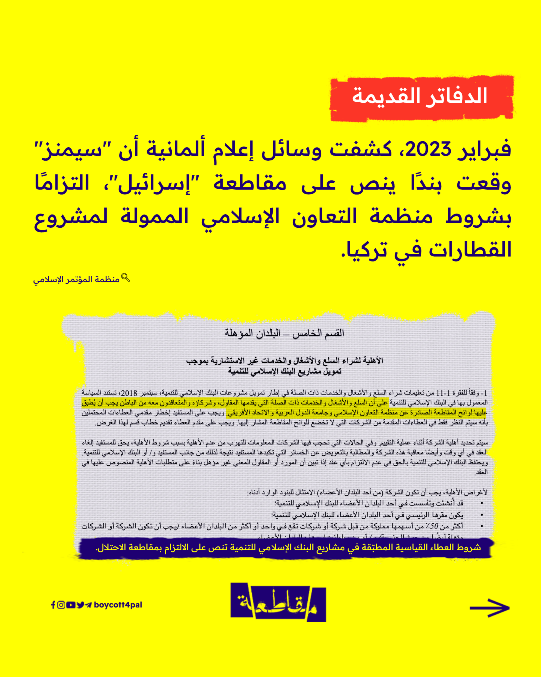 بعد تسريبات عن تفاصيل العقد الذي وقعته مع البنك الإسلامي للتنمية، تذكر الاحتلال فجأة الماضي الأسود لشركة "سيمنز"، وفتح دفاترها القديمة، وبدأ حملة لملاحقتها سياسيًا وقانونيًا في ألمانيا وأمريكا.