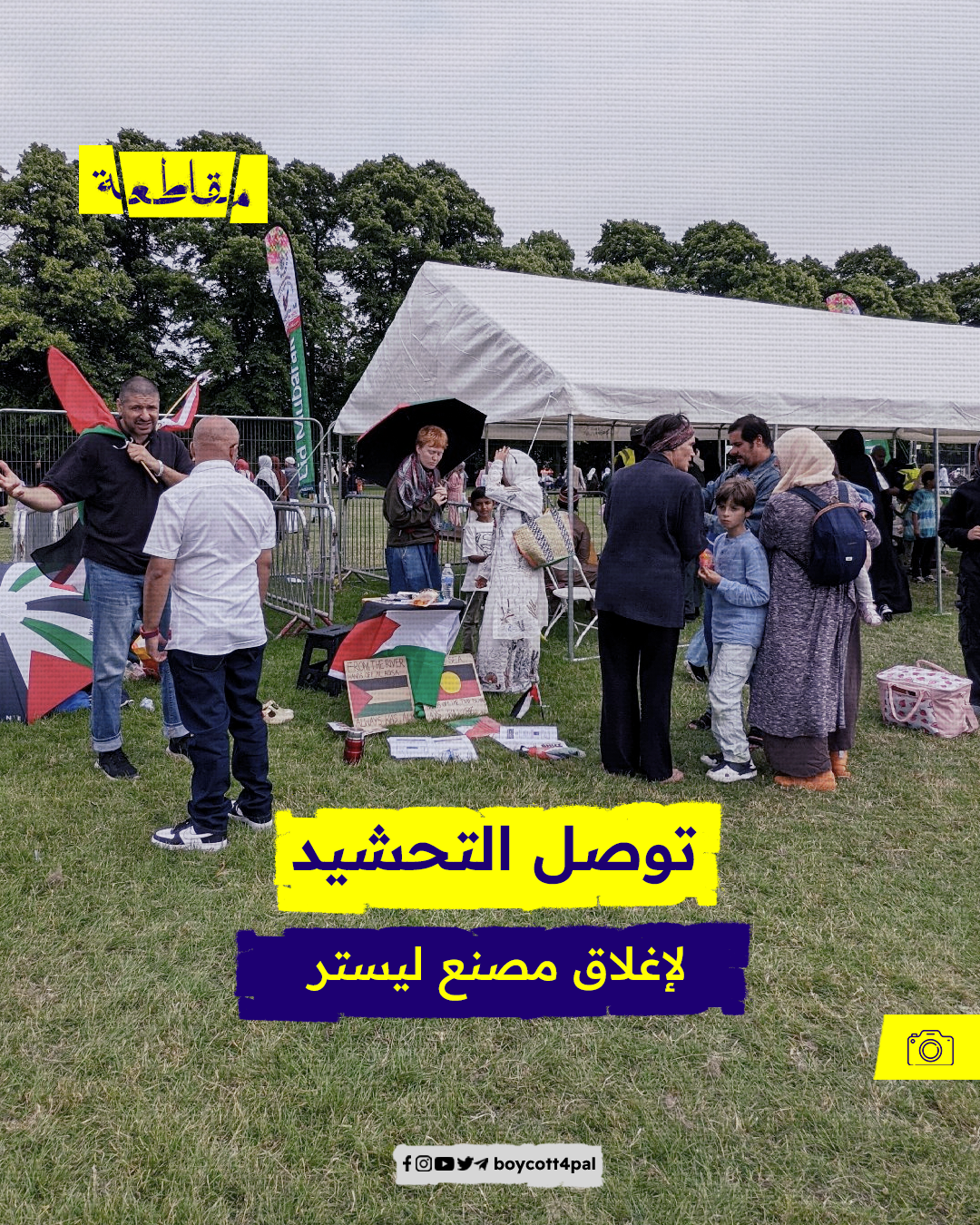نظمت حملة إغلاق مصنع الأسلحة الإسرائيلي في مدينة ليستر البريطانية بمنطقتي السلام وفيكتوريا بارك، طاولة معلومات للتوعية بضرورة إغلاق المصنع وطرده من المدينة، بعد نحو 60 يومًا من الحصار المفروض عليه من قبل نشطاء حركة فلسطين.