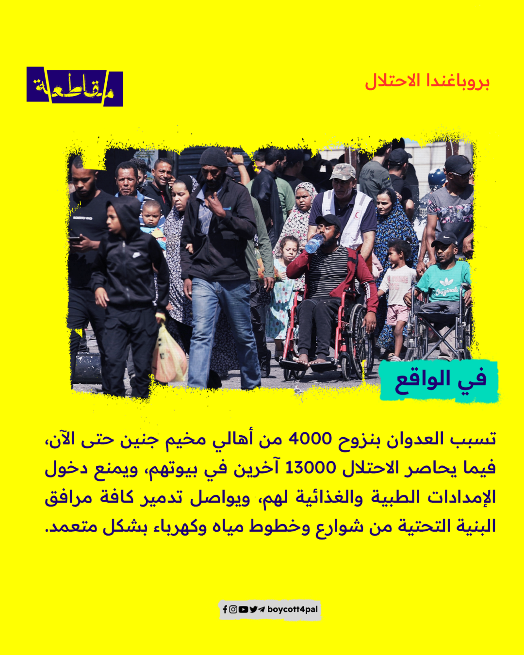 حصار مشدد، قنص وغارات، تهجير للآلاف، وتدمير واسع للبنية التحتية، ثم يتبجّح الاحتلال "نحن لا نستهدف المدنيين"!