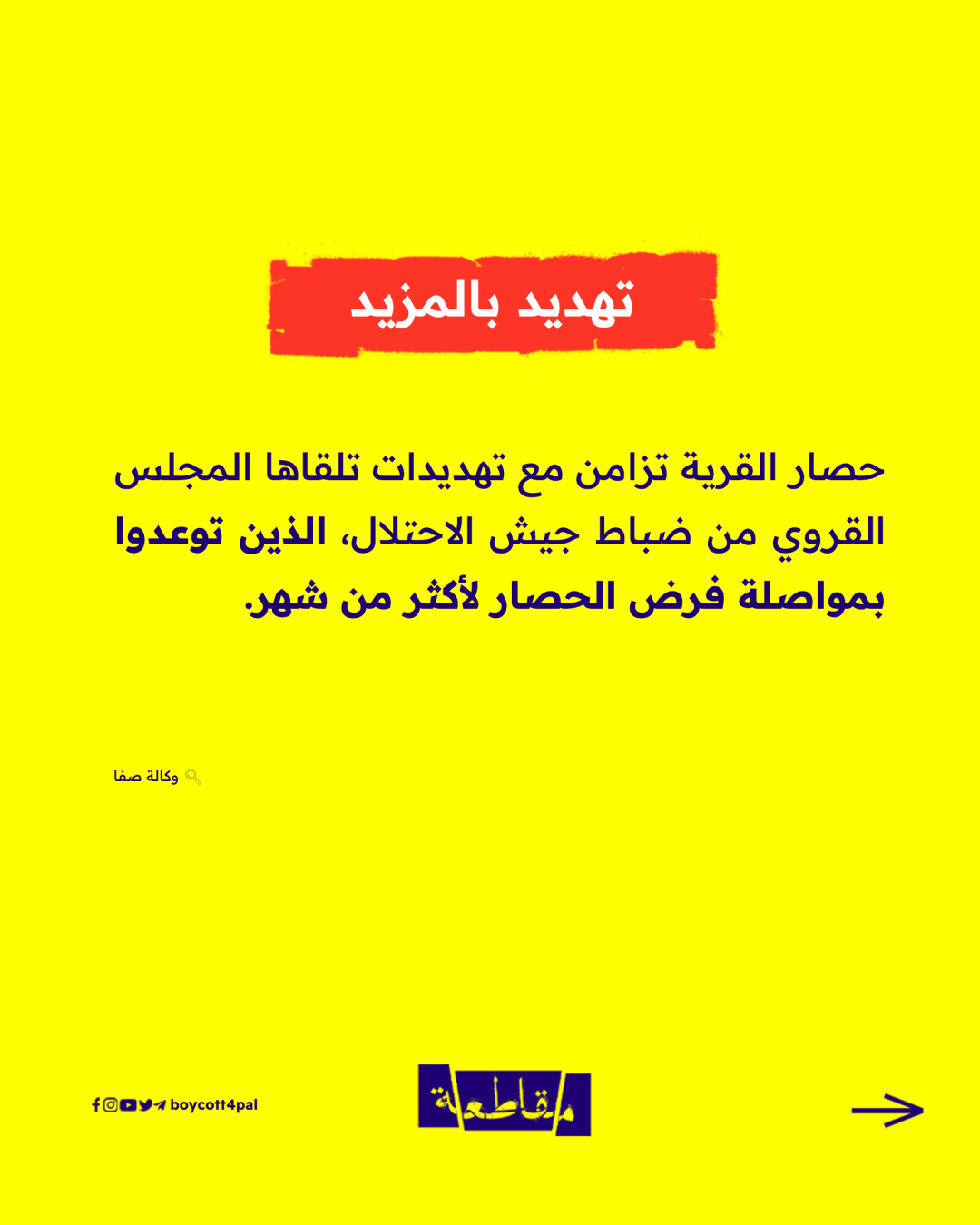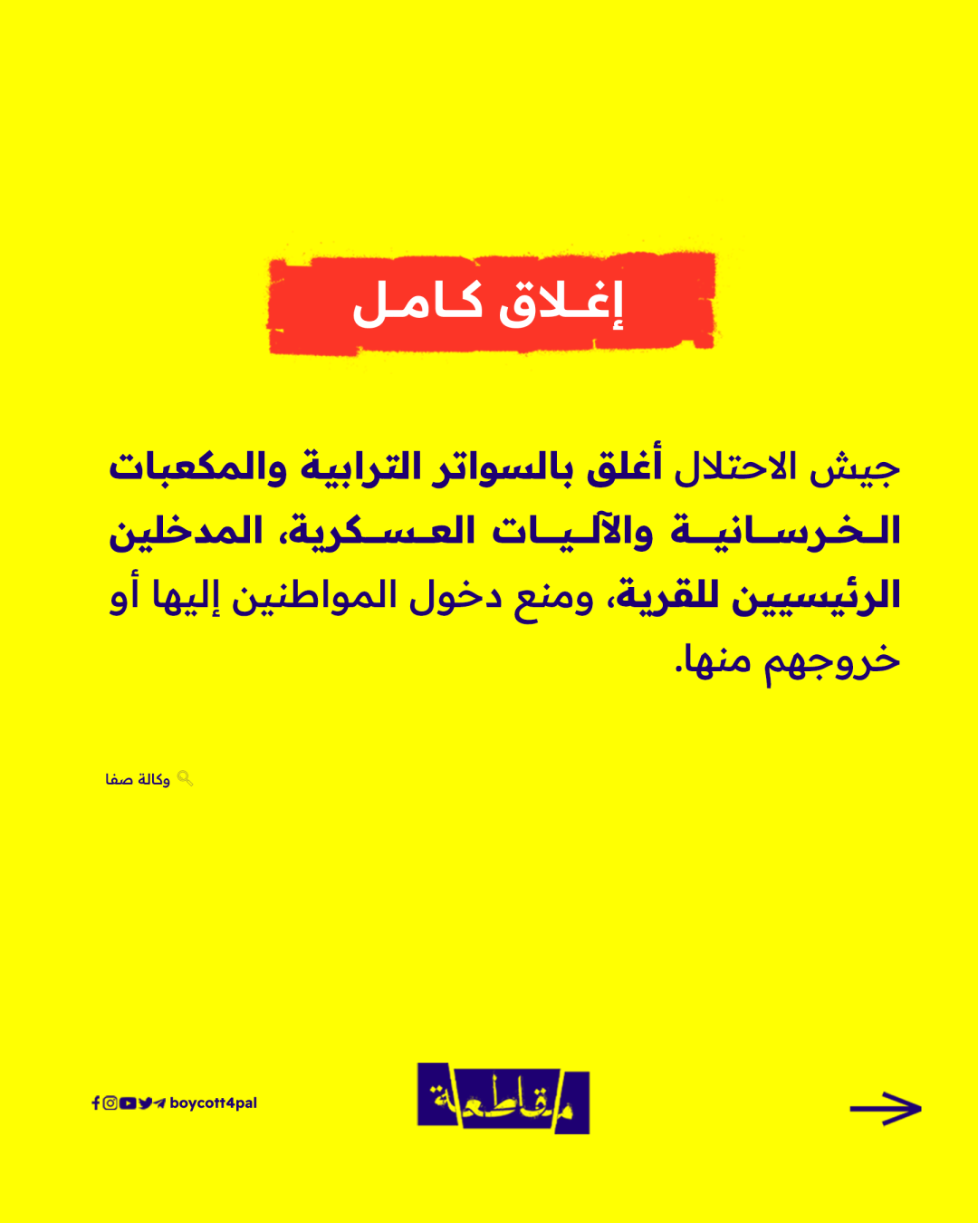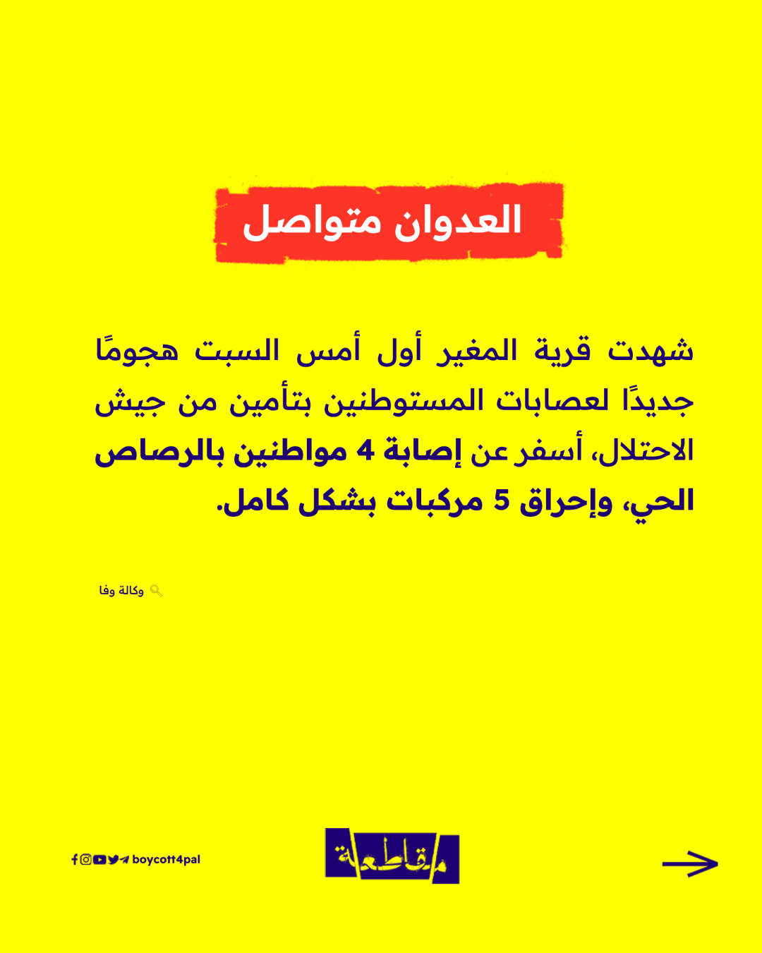 منذ 17 يومًا، يواصل جيش الاحتلال حصار قرية المغير في رام الله، وفرض قيود مشددة على سكانها، مهددًا بمواصلة فرض الحصار إلى أن “يعتذر” أهل المغير لعصابات المستوطنين عن قيامهم بالتصدي لهجمات المستوطنين الإرهابية على القرية، والتعهد بعدم التعرض لهم مجددًا!