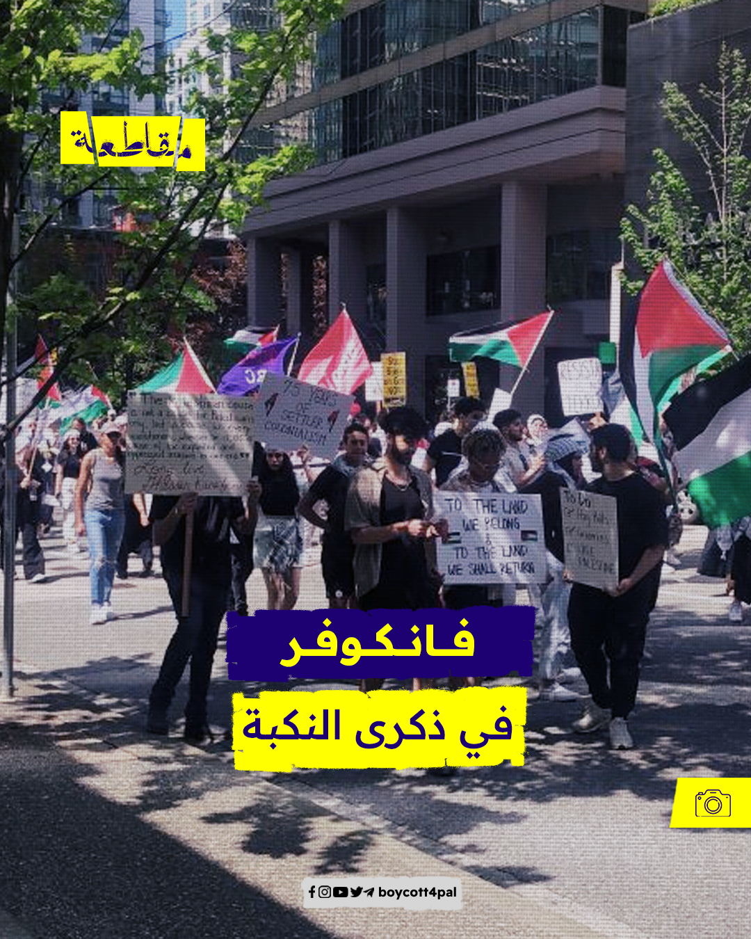 نظمت شبكة صامدون للدفاع عن الأسرى وحركة الشباب الفلسطيني وجمعية كندا فلسطين، والرابطة الدولية لنضال الشعوب لإحياء ذكرى النكبة المستمرة منذ عام 1948، مظاهرة احتجاجية وسط فانكوفر الكندية، ندد فيها المتظاهرون بسياسات الاحتلال الإسرائيلي؛ نصرةً للشعب الفلسطيني.