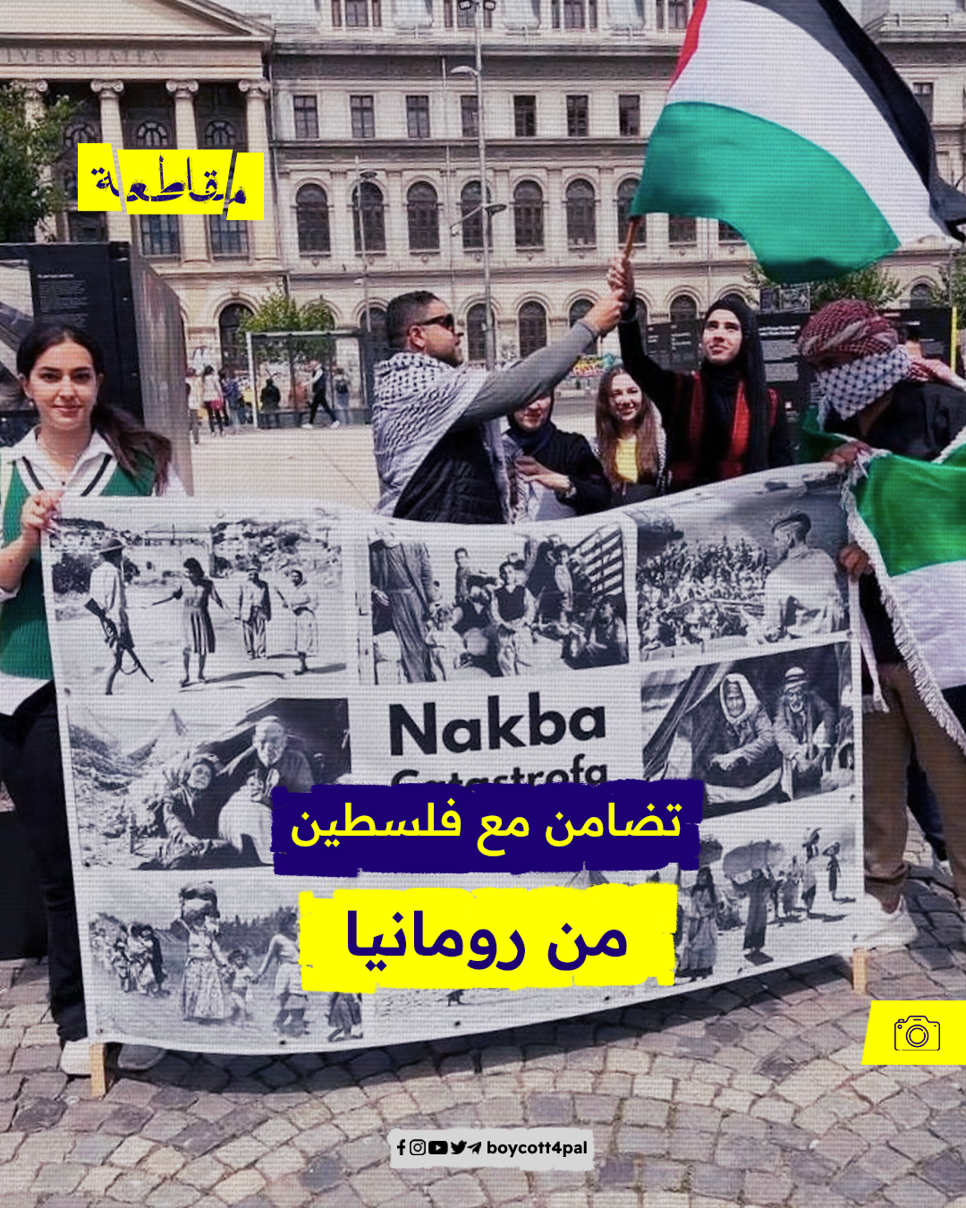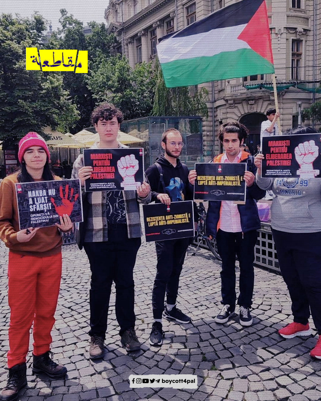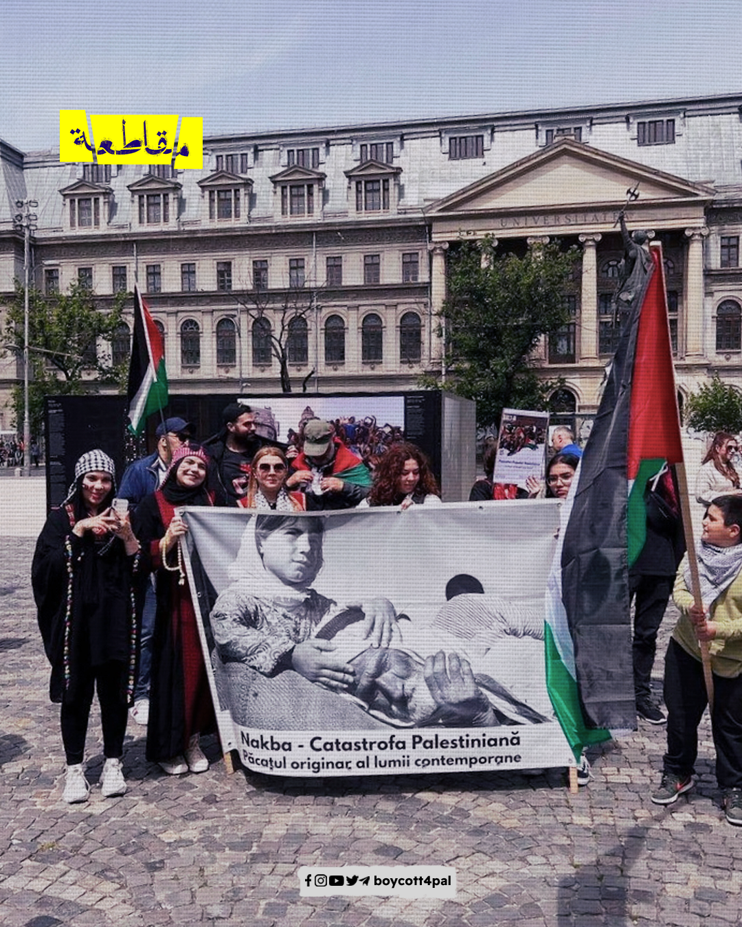 نظم عدد من النشطاء وقفة تضامنية في العاصمة الرومانية بوخارست، إحياءً للذكرى الـ 75 للنكبة الفلسطينية، إذ رفع المشاركون الأعلام الفلسطينية واللافتات المناهضة لجرائم الاحتلال.