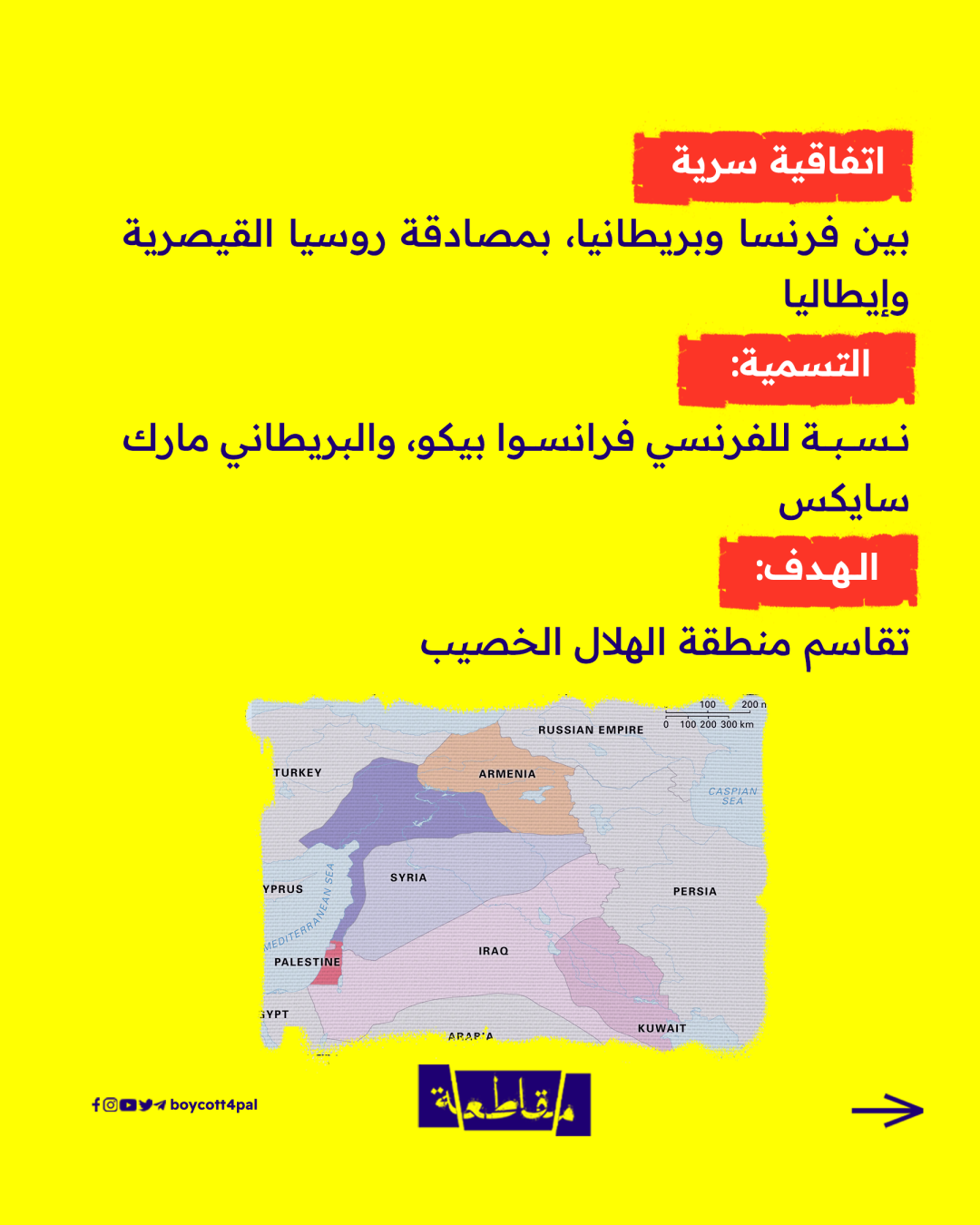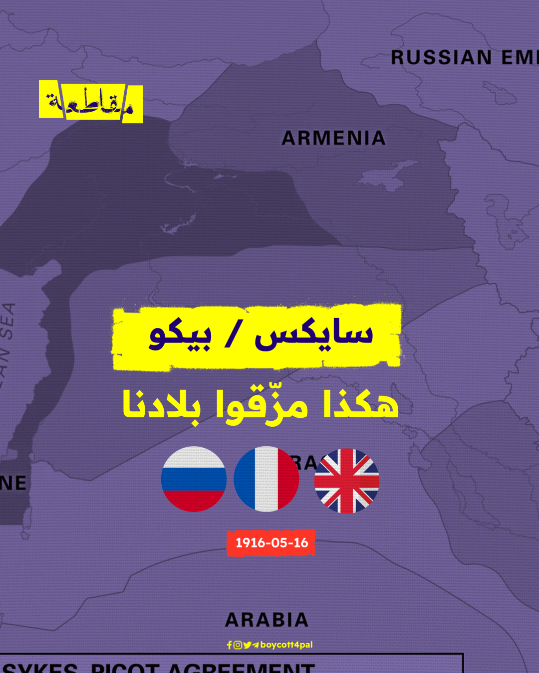 في مثل هذا اليوم 16 مايو 1916، وقعت فرنسا وبريطانيا على اتفاقية "سايكس - بيكو" التي قُسّمت بموجبها بلادنا العربية، وزرعت فيها الحدود، وخضعت لعقود تحت الاحتلالين البريطاني والفرنسي.