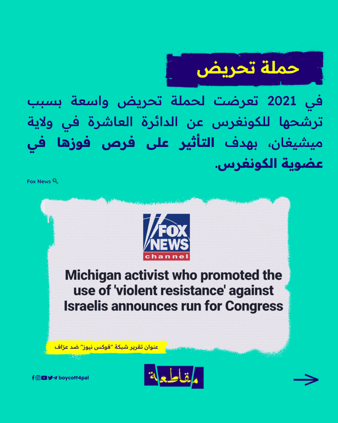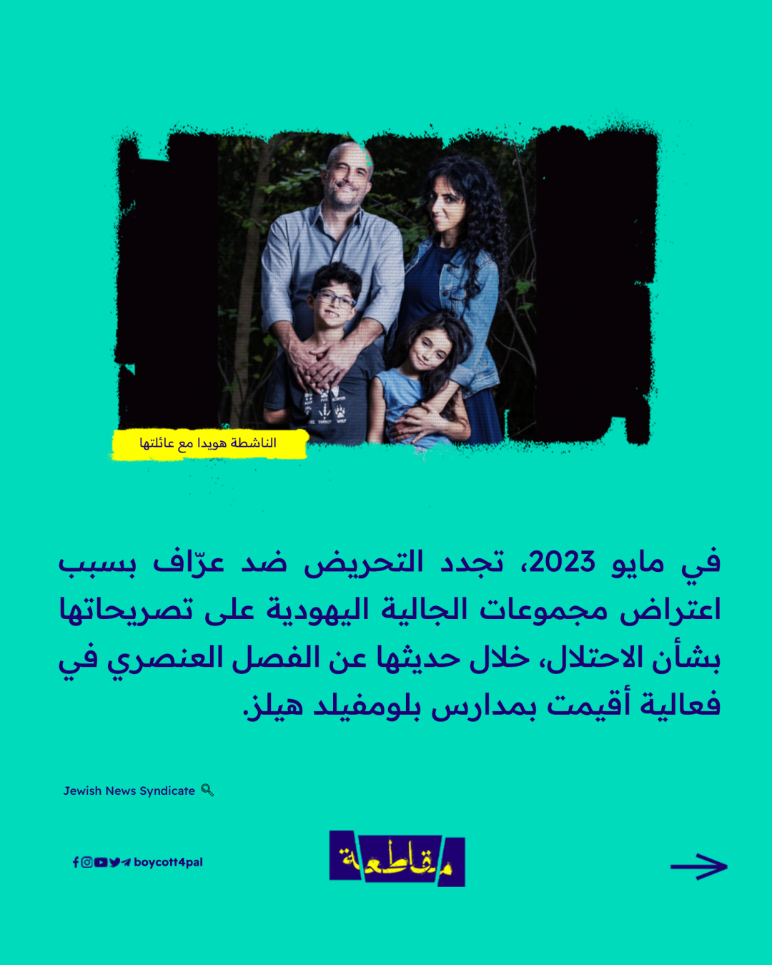 تتعرض المحامية الأمريكية من أصول فلسطينية، هويدا عرّاف، لحملة تحريض متجددة من قبل اللوبي الإسرائيلي في الولايات المتحدة، بسبب مواقفها المناهضة لجرائم الاحتلال.