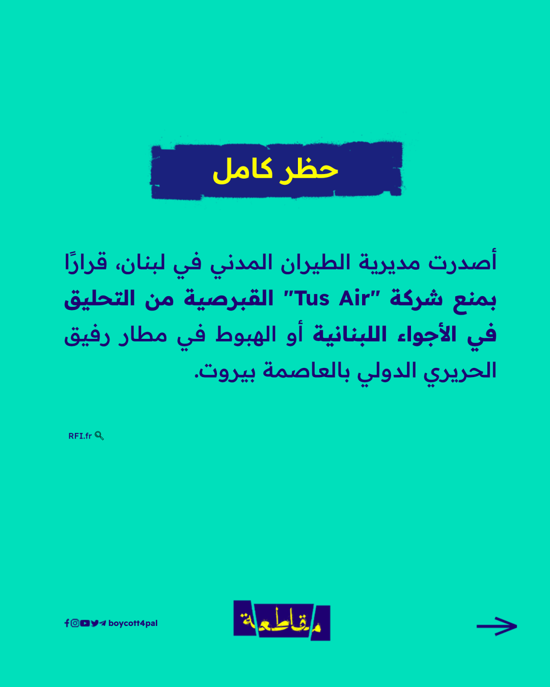 بعد الاستحواذ عليها من شركة إسرائيلية، قرار من سلطات الطيران المدني في لبنان بمنع شركة “Tus Air” القبرصية من دخول المجال الجوي اللبناني أو الهبوط في مطار بيروت.