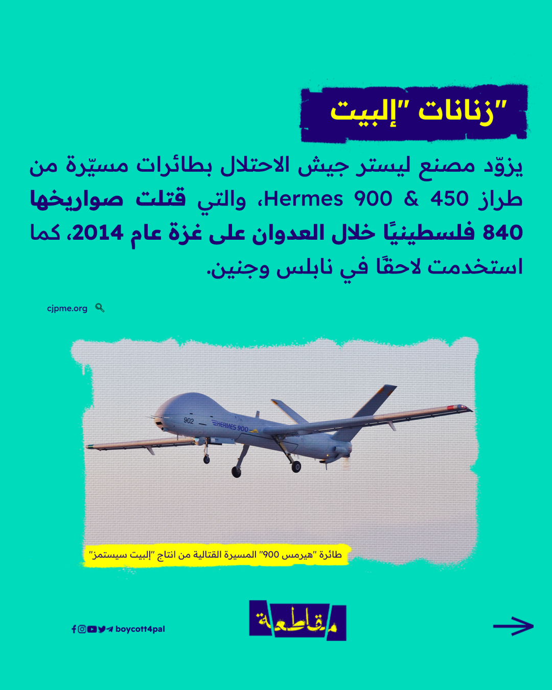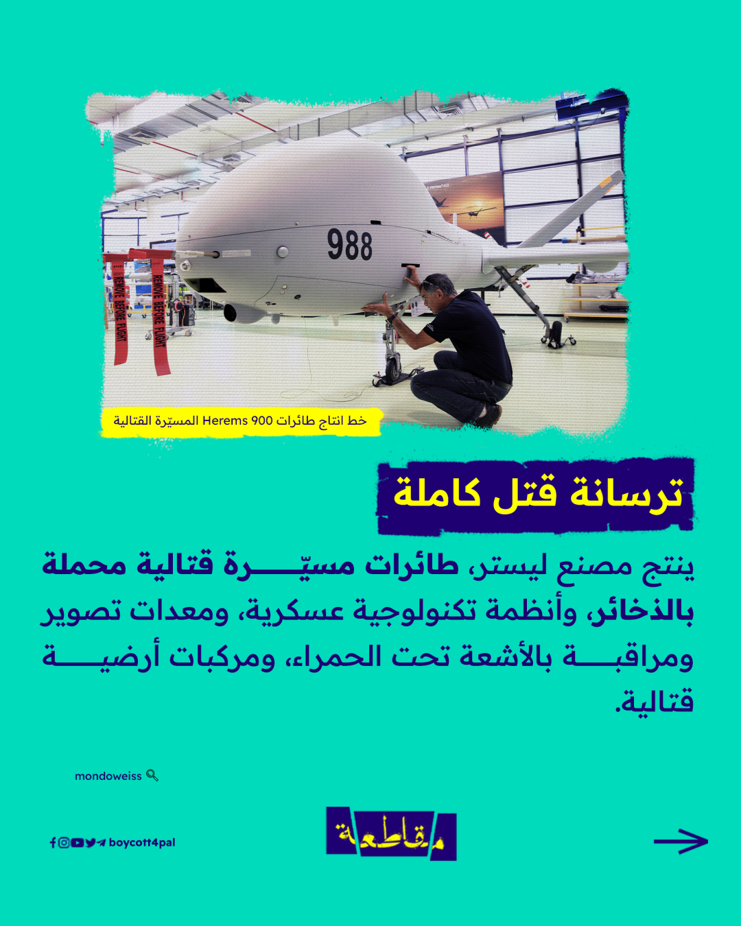 يُنتج ويزوّد جيش الاحتلال بطائرات مسيّرة قتالية من طراز هيرمس، يعرفها الفلسطينيون باسم “الزنانة” والتي قتلت بذخائرها المئات وأصابت الآلاف خلال جولات العدوان المتعاقبة على غزة. ماذا نعرف أيضًا عن مصنع ليستر الذي تحاصره الآن حركة فلسطين باعتصام بشري حتى إغلاقه بالكامل.