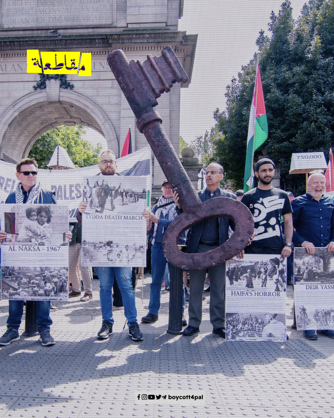 نظّمت حملة التضامن الأيرلندي الفلسطيني وقفةً في العاصمة الأيرلندية دبلن، تخللها عرض صور تجسّد النكبة وأبرز النتائج التي أعقبتها، كما رفع المشاركون الأعلام الفلسطينية ومجسم مفتاح العودة للتأكيد على أحقية العودة للأراضي المحتلة عام 1948.