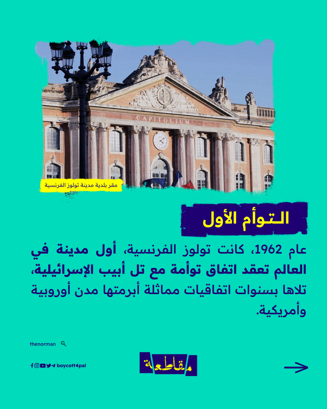 تحريض مسعور مضاد يسعى عبره الاحتلال لحماية أول اتفاق توأمة عقدته تل أبيب مع مدينة عالمية وهي تولوز عام 1962.