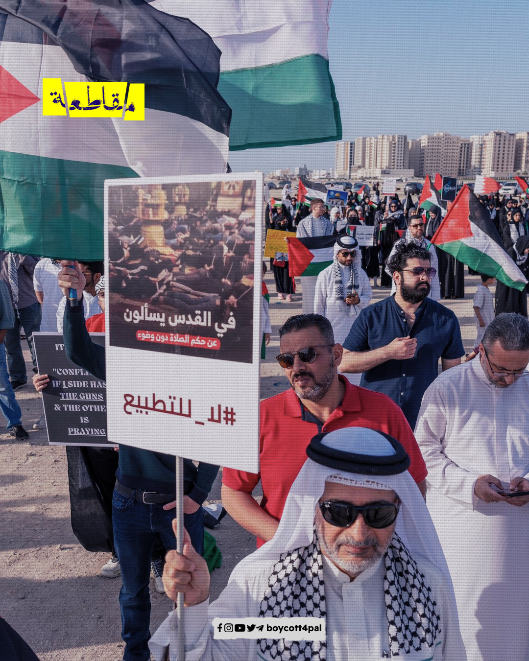 نظمت جمعية مناصرة فلسطين يوم أمس السبت في منطقة الساية بالبحرين، وقفة تضامنية مع المسجد الأقصى في ظل تصاعد الانتهاكات الإسرائيلية بحقه، وشارك في الفعالية عشرات المواطنين الذين طالبوا حكومتهم بإلغاء اتفاقية التطبيع مع الاحتلال.