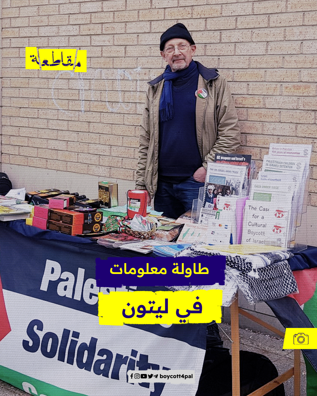 نظمت حملة التضامن مع فلسطين في مدينة ليتون البريطانية، طاولة معلومات للتعريف بالقضية الفلسطينية في ظل ارتفاع وتيرة العدوان على الشعب الفلسطيني في الأراضي المحتلة، والذي كان آخره اقتحام المسجد الأقصى والهجوم على قطاع غزة.