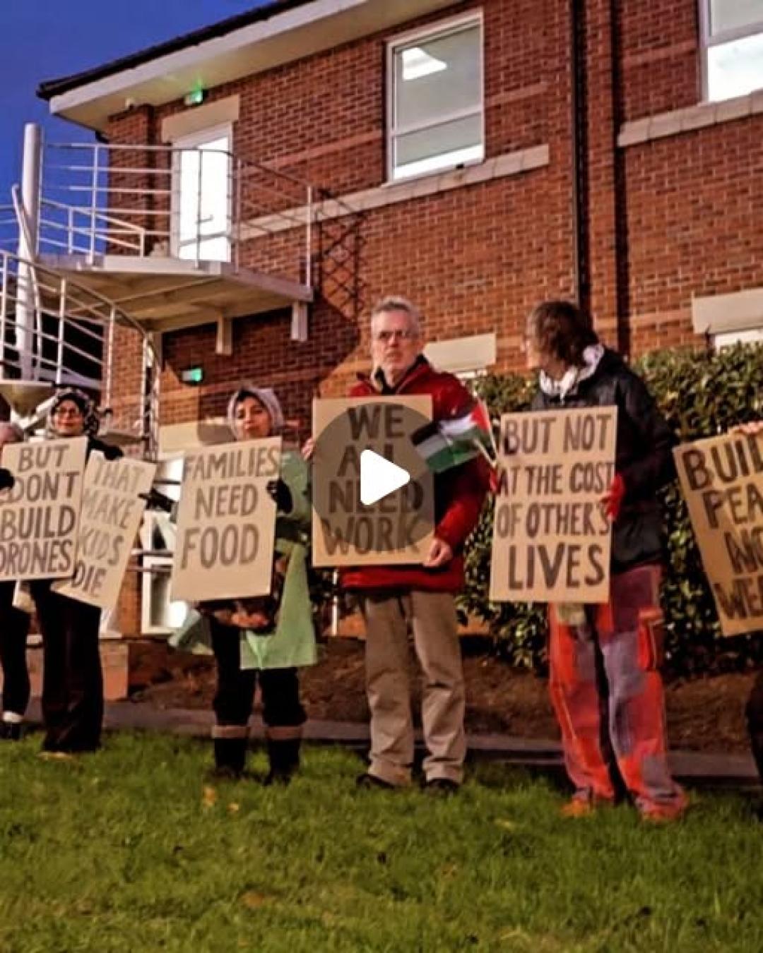 ورفع المحتجون لافتات تحمل رسائل موجهة إلى موظفي الشركة تدعوهم إلى "بناء السلام لا الأسلحة" مؤكدين أن "لا وظيفة تبرر قتل الأبرياء" وداعين إلى تحويل مهارات العاملين نحو الصناعات المدنية بدلاً من إنتاج أدوات الإبادة.