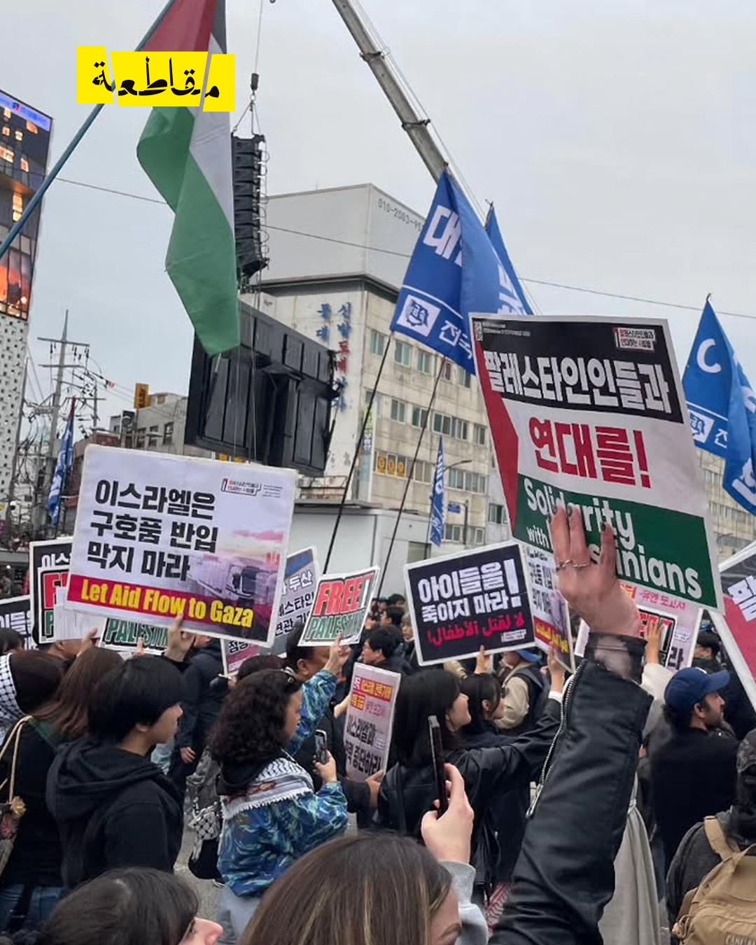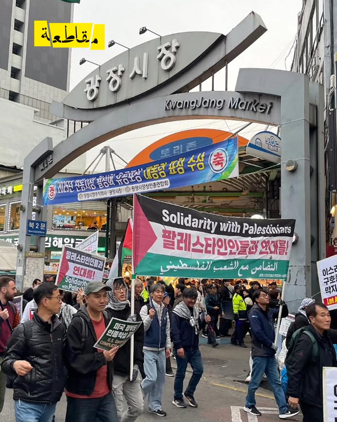 شاركت حركة “باليونسا” المتضامنة مع الفلسطينيين في “المسيرة العمالية الوطنية”، أكبر مسيرة عمالية في كوريا، حيث نظّمت مظاهرة منددة بعدوان الاحتلال على غزة ومنعه تدفق المساعدات الإنسانية. سار المشاركون من موقع المسيرة الأولى إلى المسيرة العمالية الكبرى، وانضم إليهم عدد كبير من المتظاهرين الذين رفعوا شعارات داعمة لفلسطين ومناهضة للتعامل مع دولة الإبادة الجماعية.