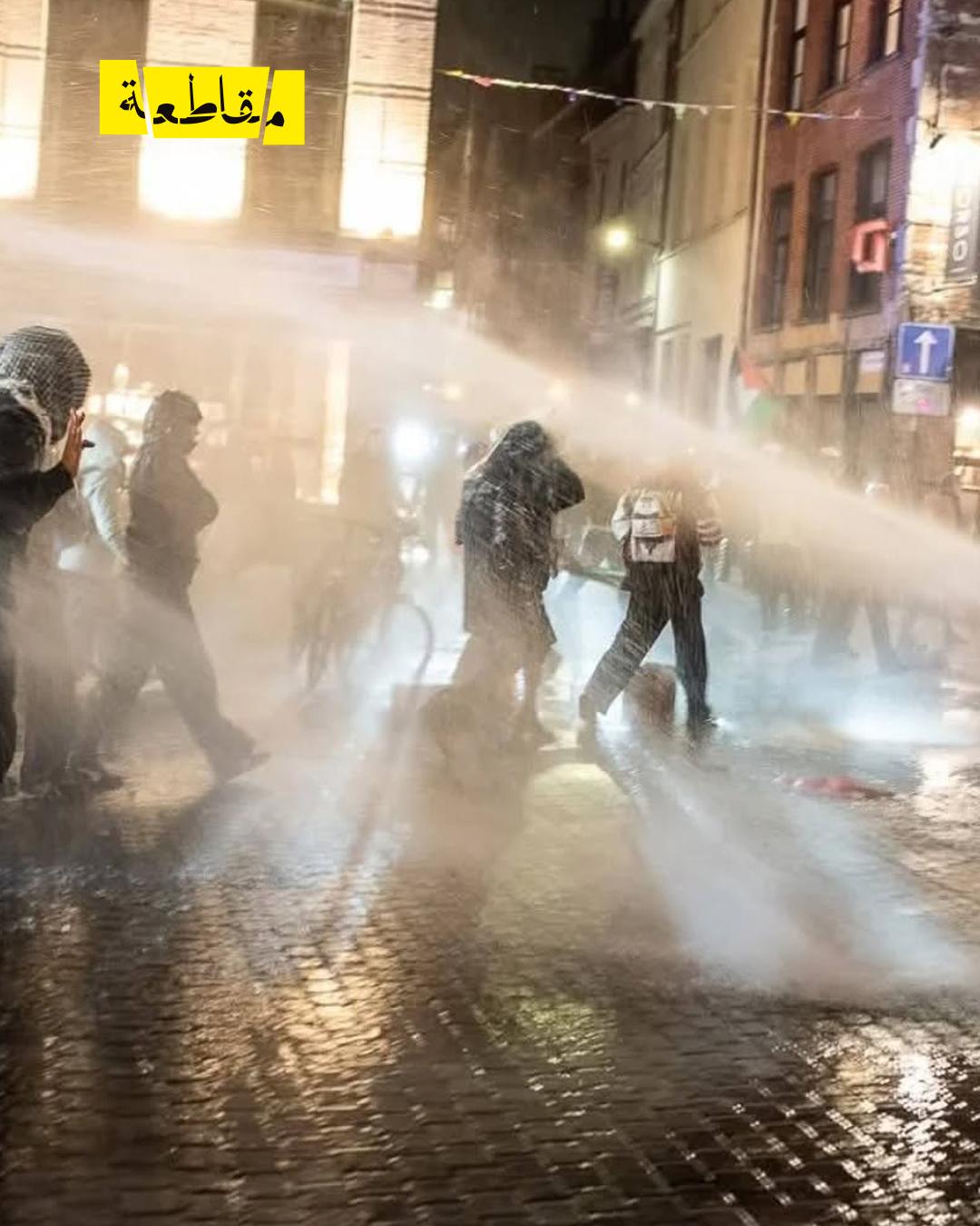 رفع المشاركون لافتات تضامنية ورددوا هتافات مؤيدة لفلسطين، فيما قمعتهم قوات الشرطة، مستخدمة خراطيم المياه التي احتوت على مادة "الكابسيسين" الحارقة، وألقت القبض على نحو خمسة عشر متظاهرًا.