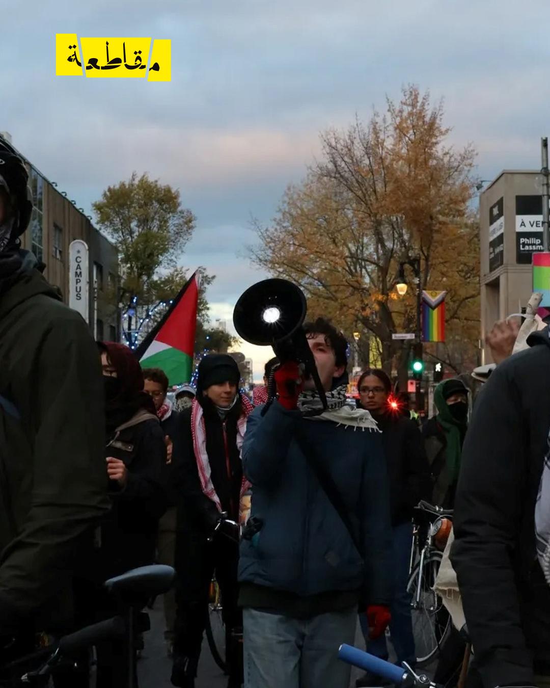 أغلق ناشطون متضامنون مع فلسطين من مجموعة "Palestine Vivra" جسر جاك كارتييه في مدينة مونتريال – كندا، يوم أمس السبت 8 نوفمبر، في إطار حملة احتجاجية ضد استمرار استثمارات الحكومة الكندية ومؤسسات مونتريال في شركات صهيونية متورطة في جرائم حرب الإبادة التي ارتكبها جيش الاحتلال بحق الفلسطينيين العزّل في قطاع غزة.