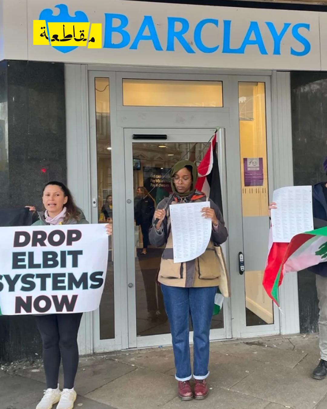 نظمت حركة Aberdeen SPSC (أبردين SPSC) وقفة احتجاجية أمام فرع بنك "باركليز" في مدينة أبردين بالمملكة المتحدة، للتعبير عن رفضها لاستثمارات البنك في شركة "إلبيت سيستمز الإسرائيلية"، المتخصصة في إنتاج الأسلحة والمعدات العسكرية، بما في ذلك الطائرات بدون طيار والمركبات المدرعة وأنظمة المراقبة والتي يستخدمها جيش الاحتلال لارتكاب الجرائم والانتهاكات بحق الشعب الفلسطيني.
