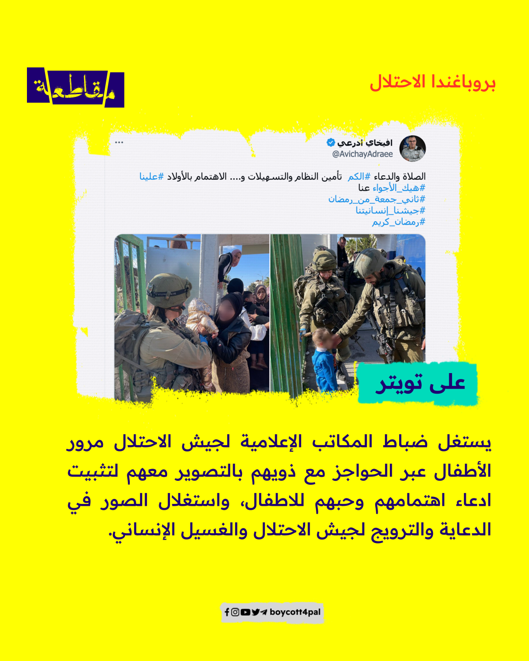 لا يسلم الأطفال الفلسطينيون من استغلالهم في الترويج والدعاية للاحتلال و"الغسيل الإنساني".