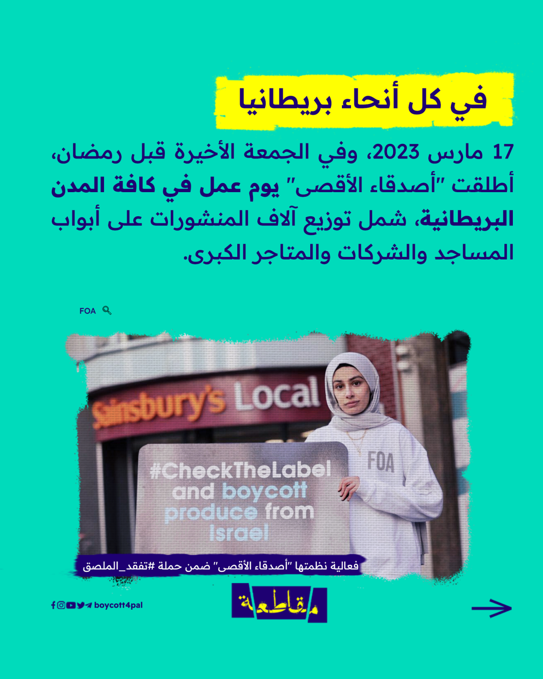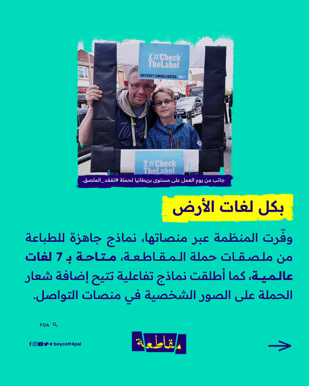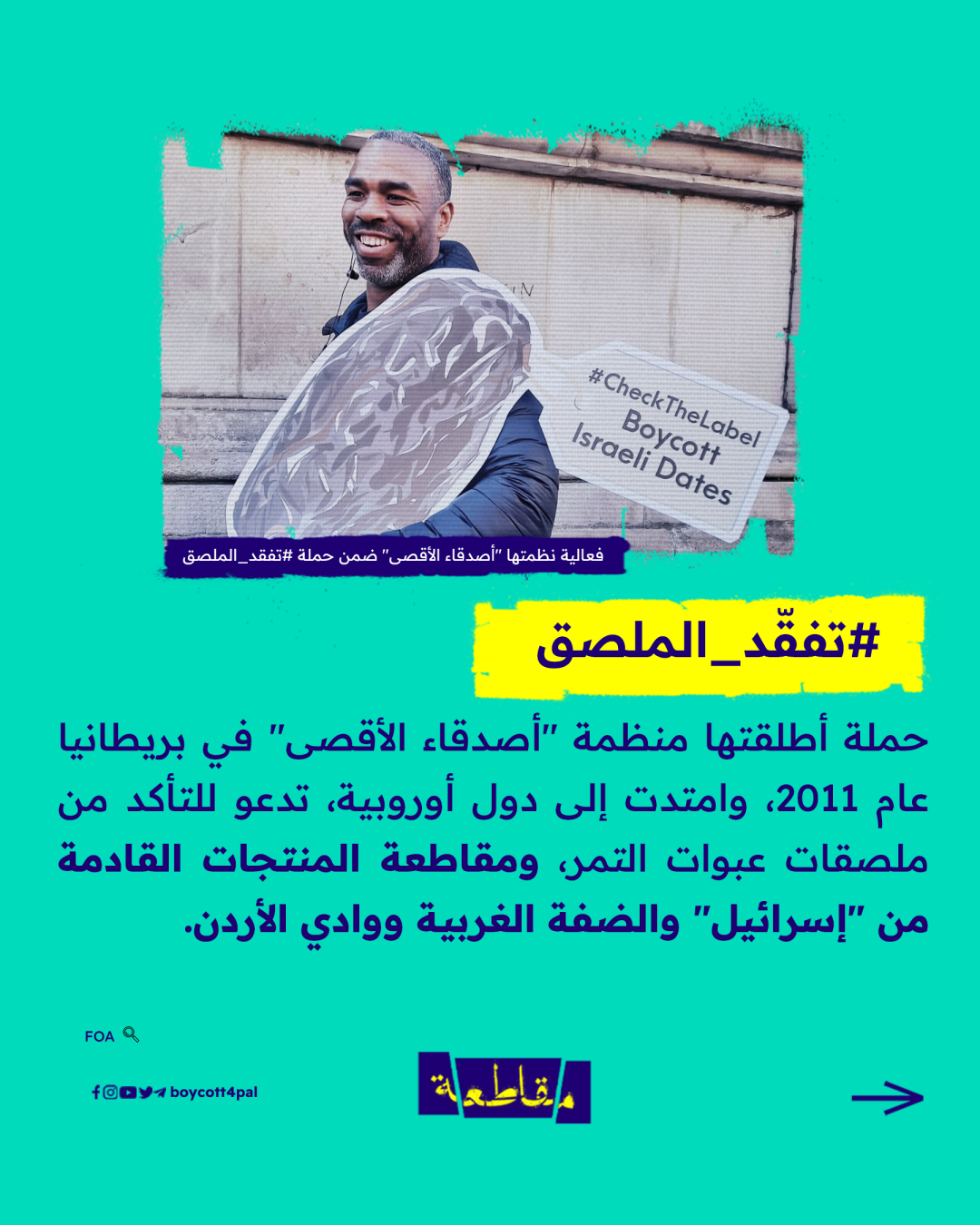 تجد ملصقاتها على رفوف البقالات الشعبية في تولوز، وأبواب المساجد في مانشستر، وامتدت إلى بلجيكا وإيرلندا وغيرها من الدول، لتحقق انتشارًا واسعًا في استهداف ومقاطعة منتجات تمور الاحتلال.