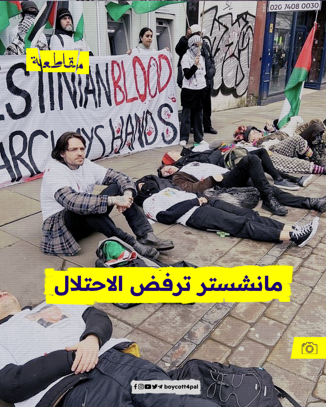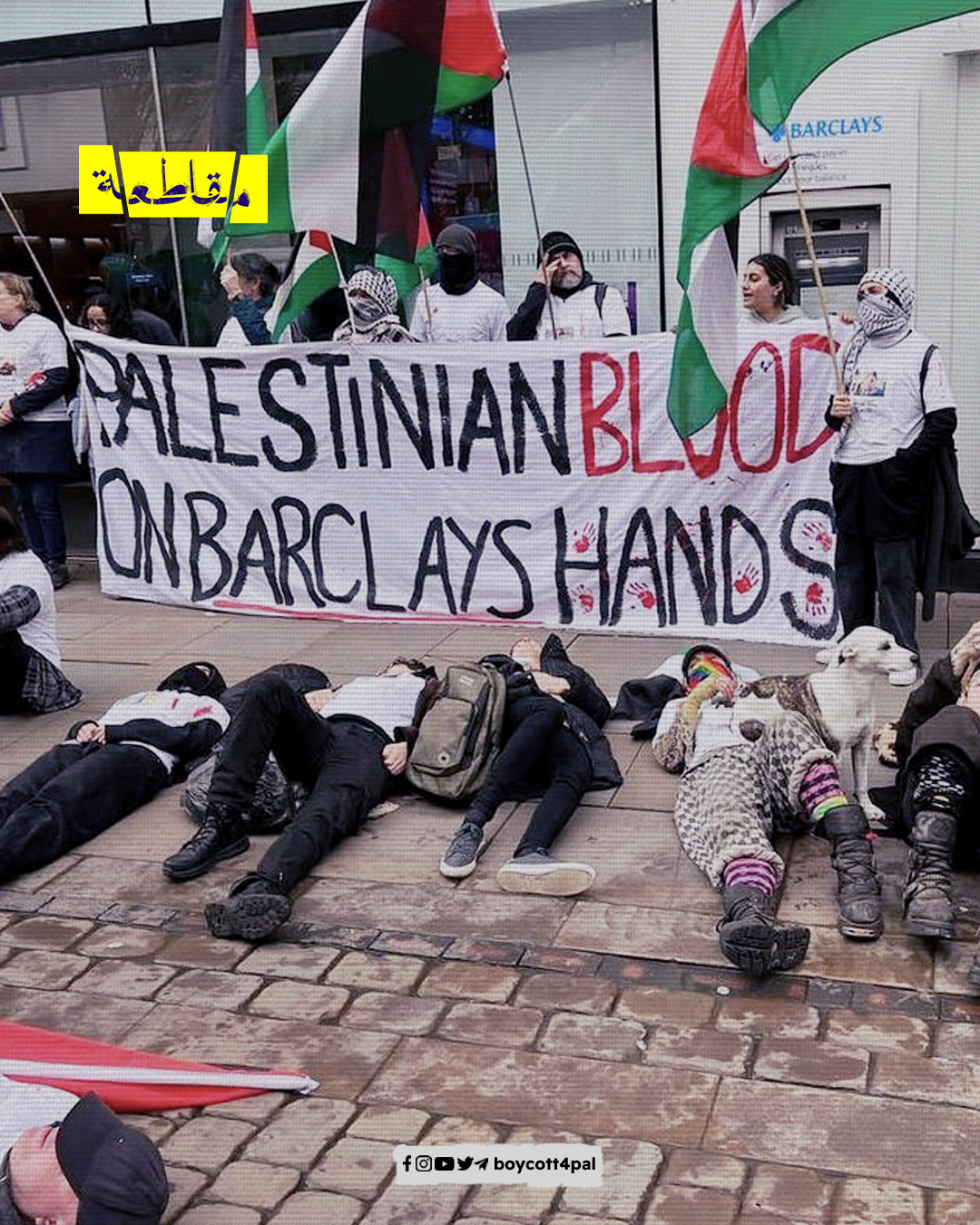 ضمن فعاليات 25 مارس، تظاهر عشرات النشطاء المتضامنين مع القضية الفلسطينية، أمام بنك "باركليز" في مانشستر، لمطالبته بوقف دعمه للشركات المتواطئة مع الاحتلال في جرائمه بحق الفلسطينيين.
