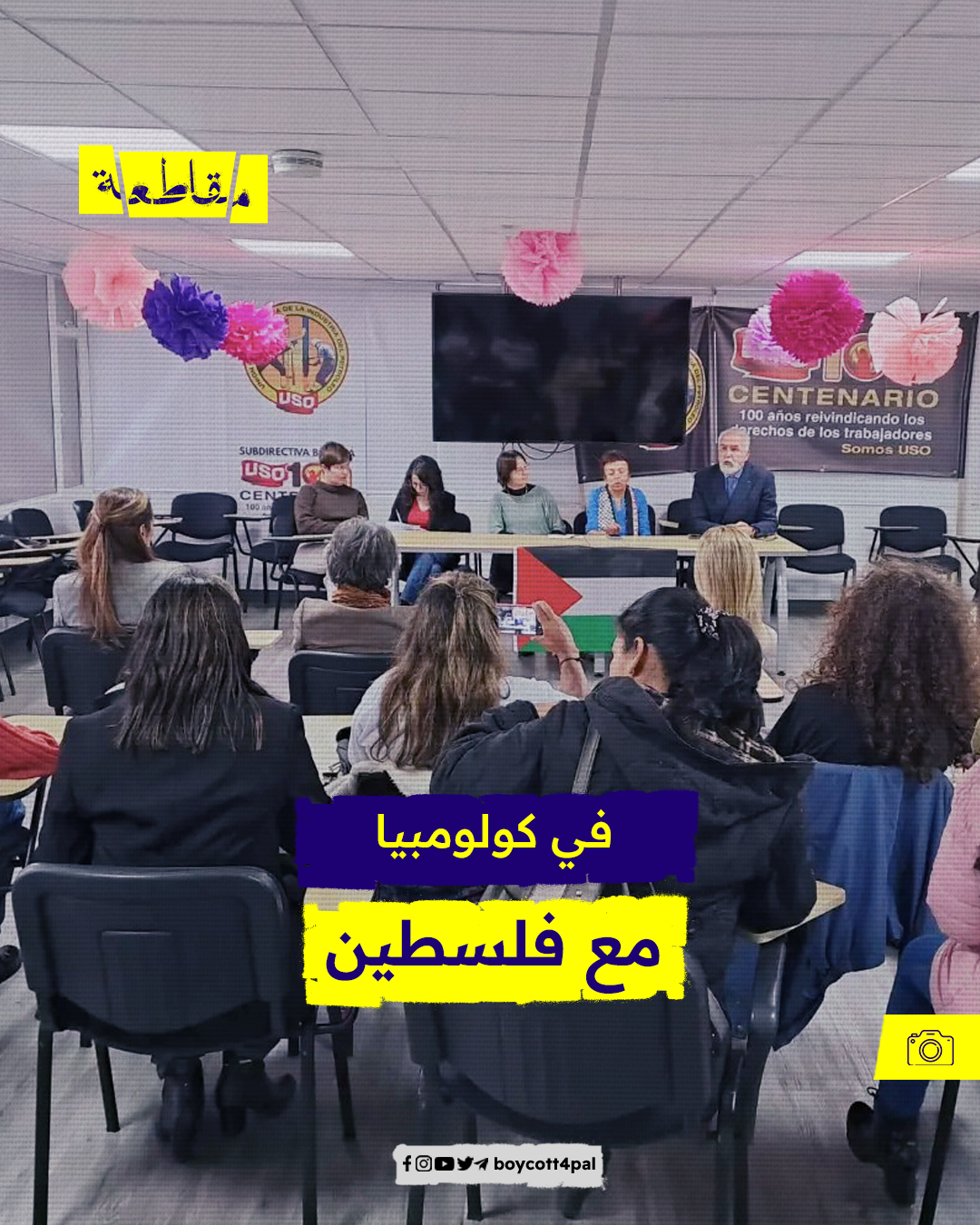 نظمت جمعية "مانو" النسائية ندوة بعنوان "النساء والشعب الفلسطيني يقاومان الاحتلال"، في العاصمة الكولومبية "بوغوتا"، وذلك ضمن فعاليات أسبوع مناهضة الفصل العنصري الإسرائيلي.