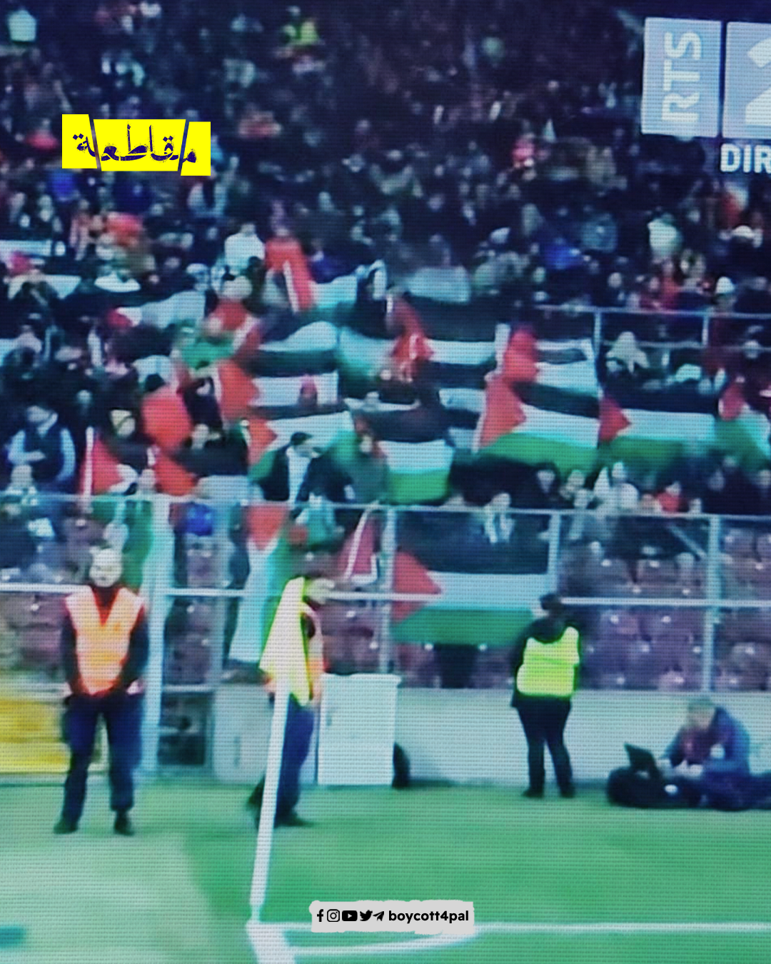رفعت الجماهير الأعلام الفلسطينية، خلال المباراة التي جمعت منتخبي سويسرا والاحتلال في جنيف، وذكرت مصادر إعلامية أن أكثر من 100 شخص رفع العلم الفلسطيني خلال اللقاء الذي جمع الفريقين.