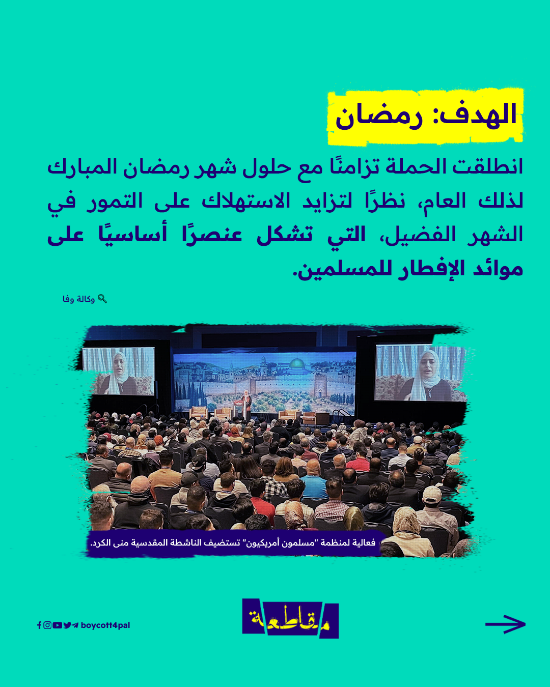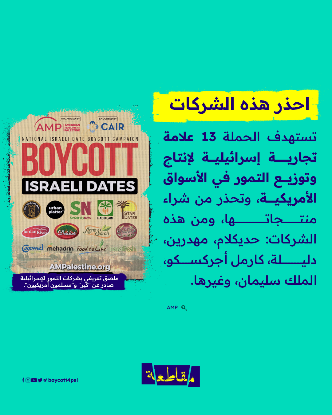 إحدى أقدم حملات مقاطعة منتجات الاحتلال من التمور في أمريكا الشمالية وأكثرها انتشارًا، والتي تتجدد سنويًا مع اقتراب شهر #رمضان من كل عام.