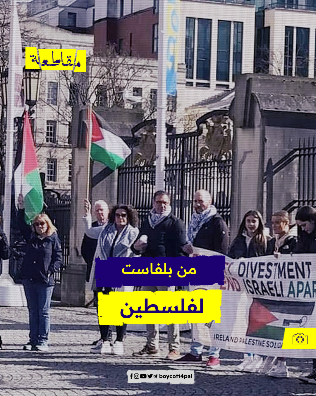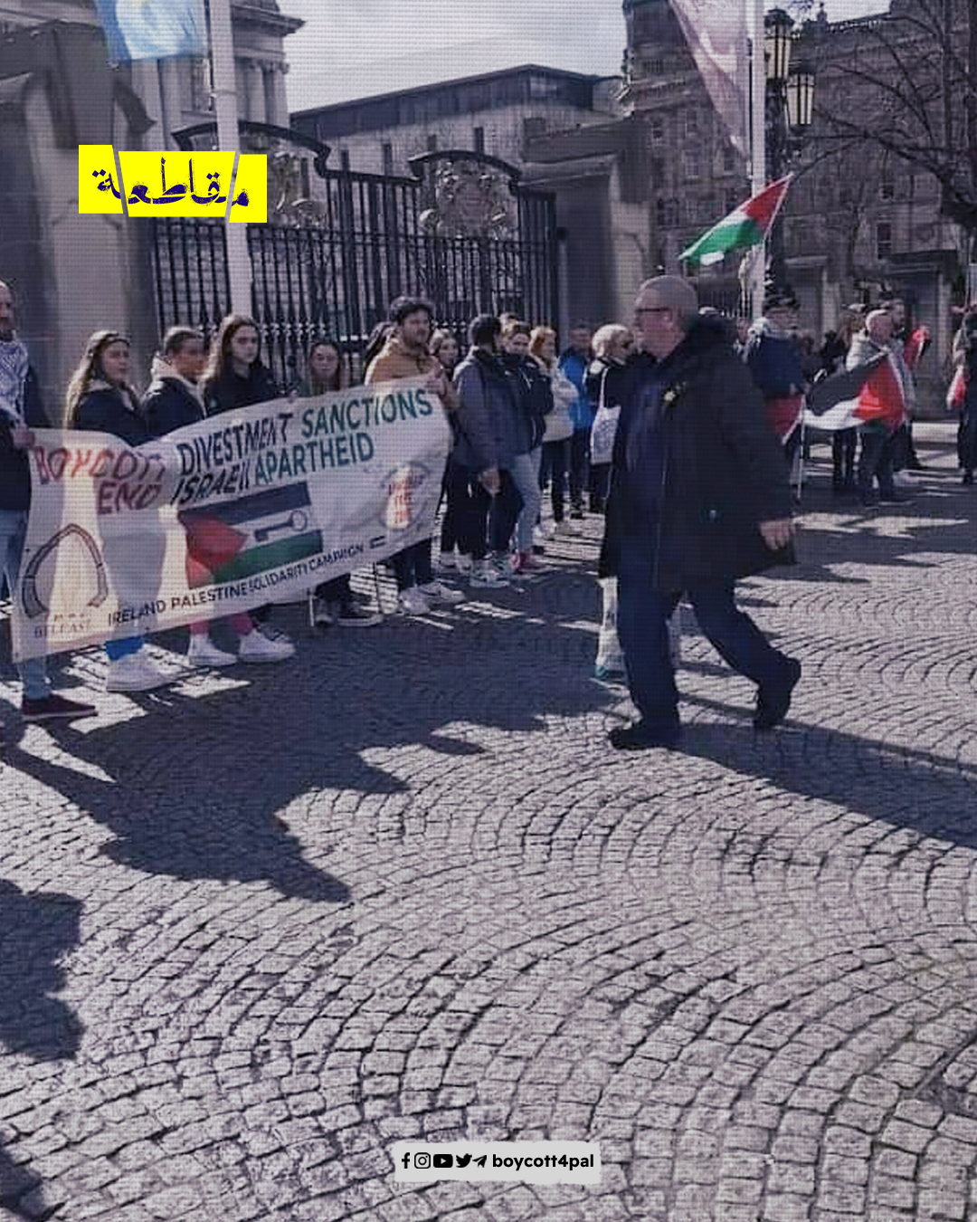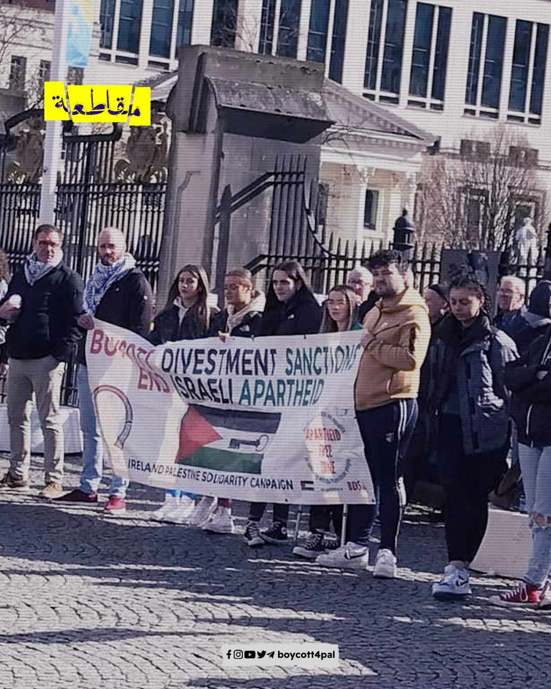 نظم نشطاء حملة التضامن الأيرلندي الفلسطيني وقفة تضامنية مع الشعب الفلسطيني بمناسبة يوم الأرض الذي يُصادف 30 مارس الجاري، وطالب المشاركون في الوقفة بإنهاء نظام الفصل العنصري الإسرائيلي.