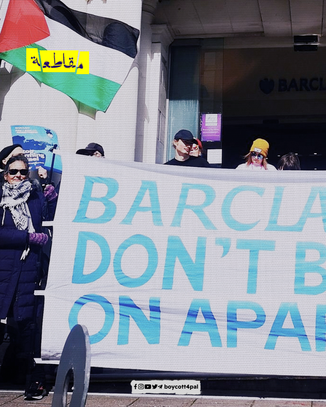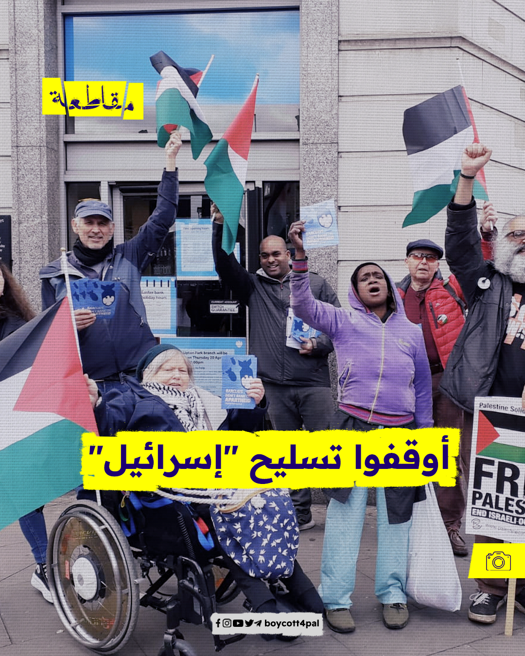 شهدت فروع بنك "باركليز" في "نورثانتس"، "شيفيلد"، "برايتون"، "نوتنجهام"، "بليموث"، ومعظم فروع "البنك" في بريطانيا وقفات متزامنة رافضة لاستثماراته في الشركات الداعمة للاحتلال والمساهمة في قتل الفلسطينيين وتشريدهم، ضمن فعاليات يوم العمل ضد "باركليز" والذي كان يوم أمس.