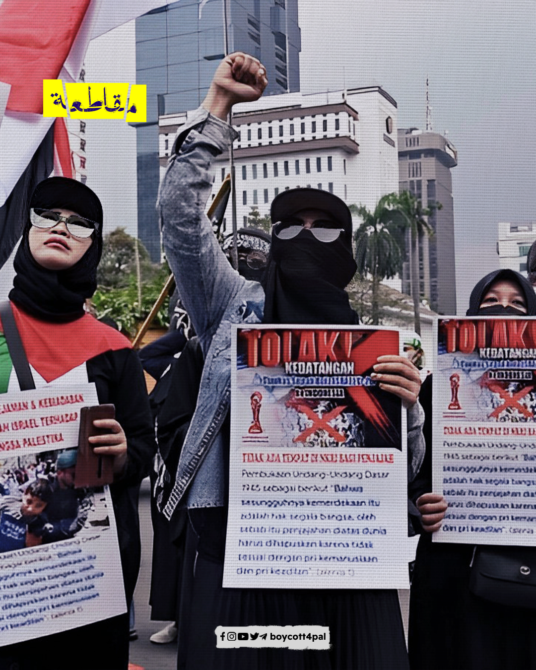 عقب الإعلان عن مشاركة فريق الاحتلال في بطولة كأس العالم تحت 20 سنة، تجمع العشرات من الإندونيسيين في العاصمة جاكارتا، رفضًا للمشاركة الإسرائيلية في البطولة الدولية التي تقام في إندونيسا العام الجاري 2023.