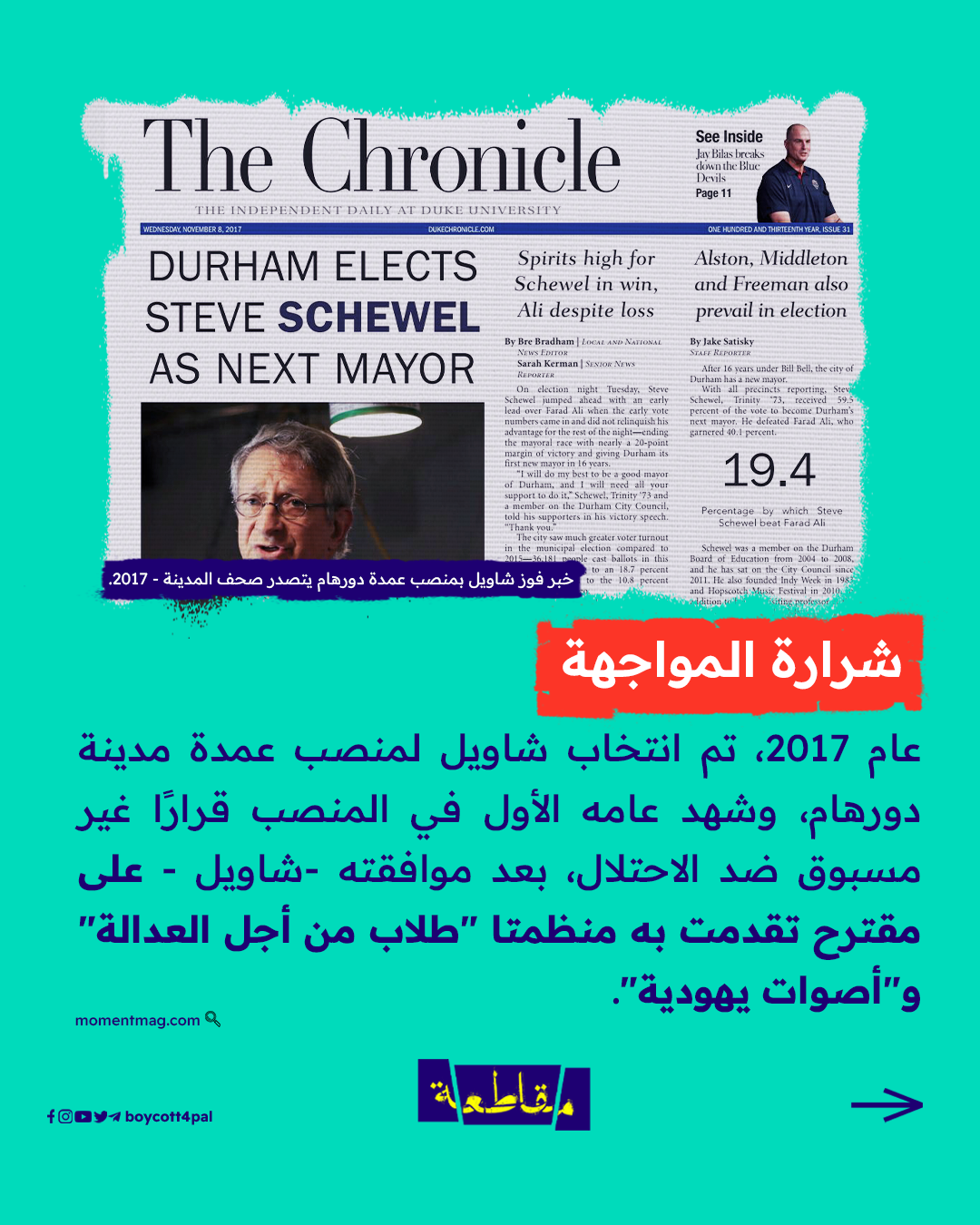 كان أول عمدة لمدينة أمريكية يتخذ قرارًا بوقف برامج تدريب قوات شرطة مدينته في كيان الاحتلال، ليواجه عاصفة تحريض شرسة من اللوبيات الصهيونية، التي قهرها مجددًا باكتساحه انتخابات المدينة وانتزاع ولاية ثانية.