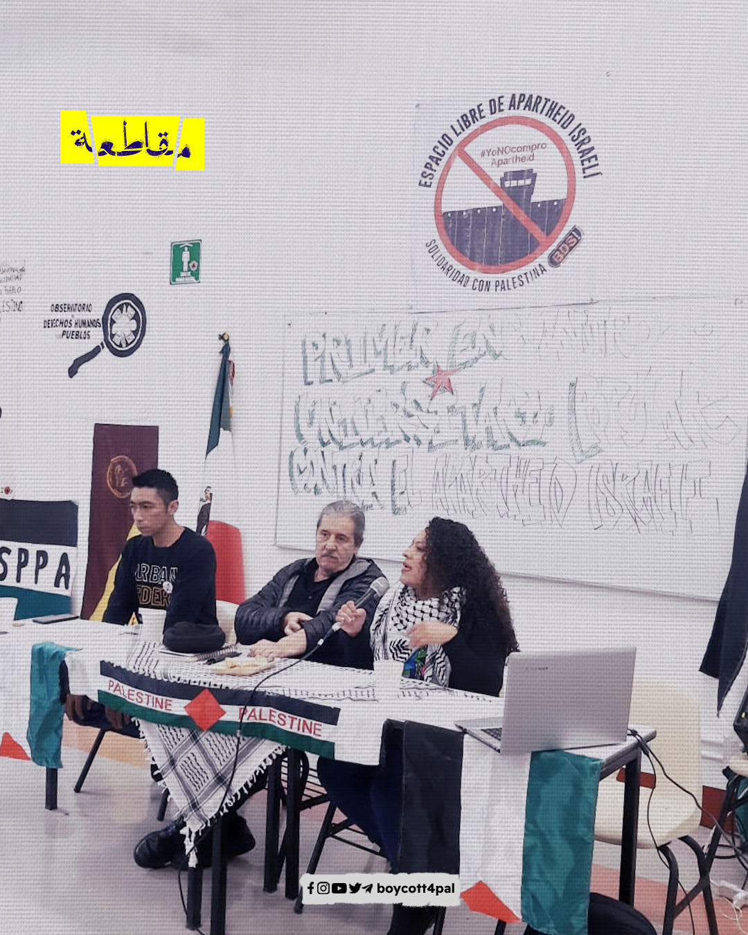 ضمن فعاليات أسبوع مناهضة الفصل العنصري، نظم مرصد شعوب حقوق الإنسان في المكسيك لقاءً جماهيريًا بهدف التعريف بالانتهاكات التي يرتكبها الاحتلال في الأراضي المحتلة بحضور نشطاء المرصد ومتضامنين مع القضية الفلسطينية.