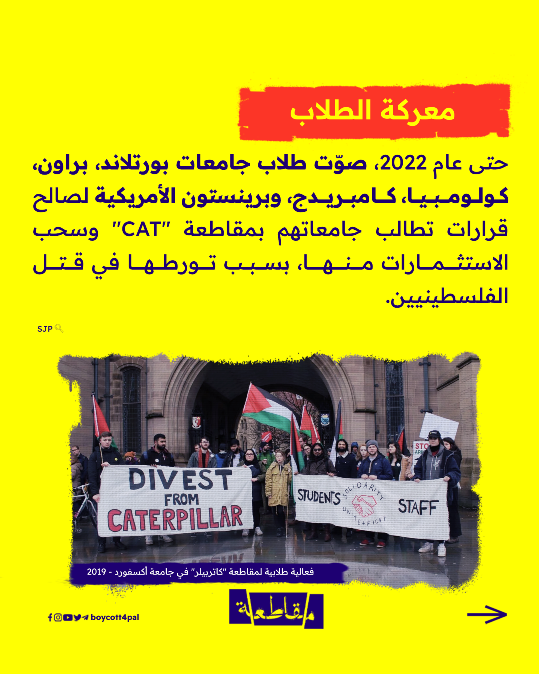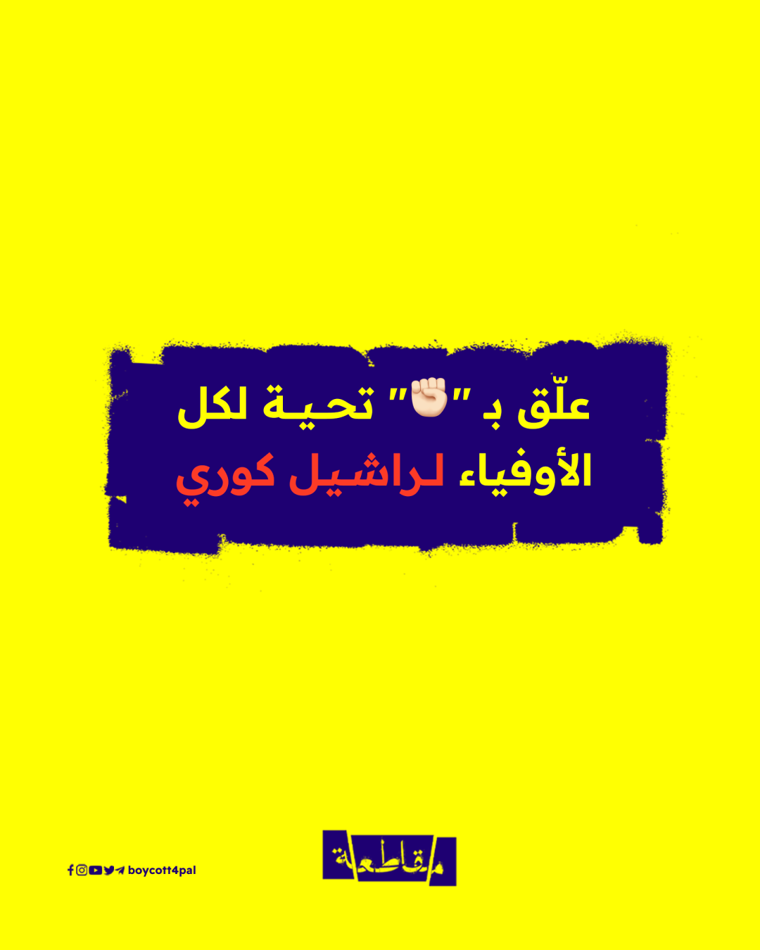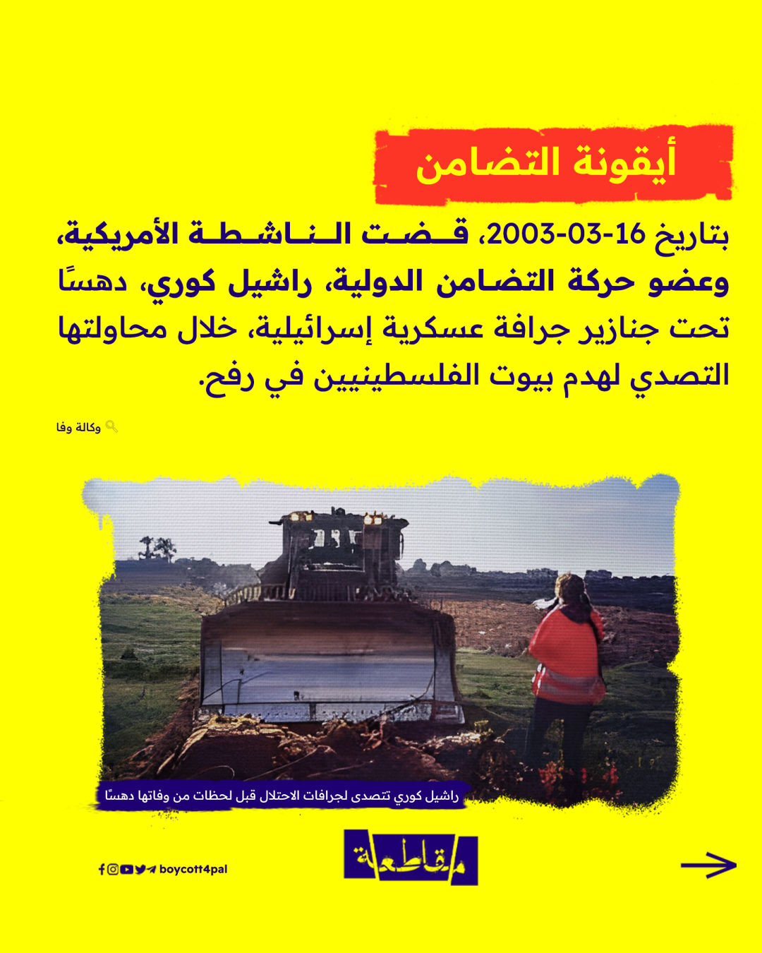 جريمة، كانت شرارة حملة مقاطعة "كاتربيلر" التي قادها زملاء راشيل، وتمددت لاحقًا إلى كبرى جامعات العالم، ملحقة خسائر اقتصادية بشريك الاحتلال، ومزوّده الأول بآليات الموت والخراب.