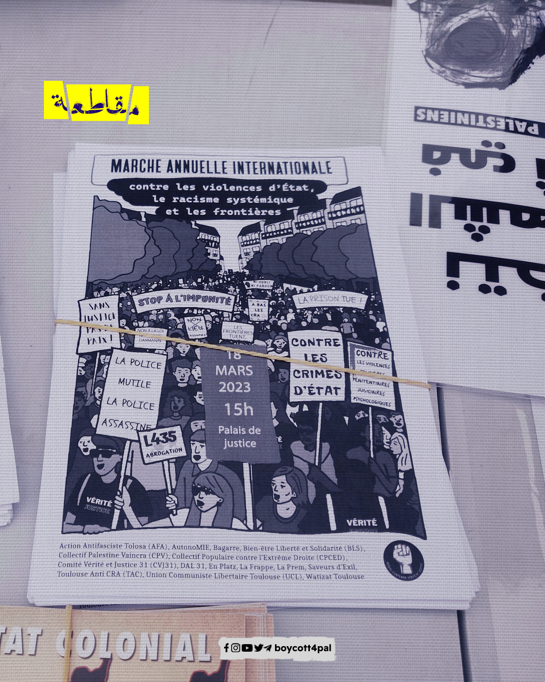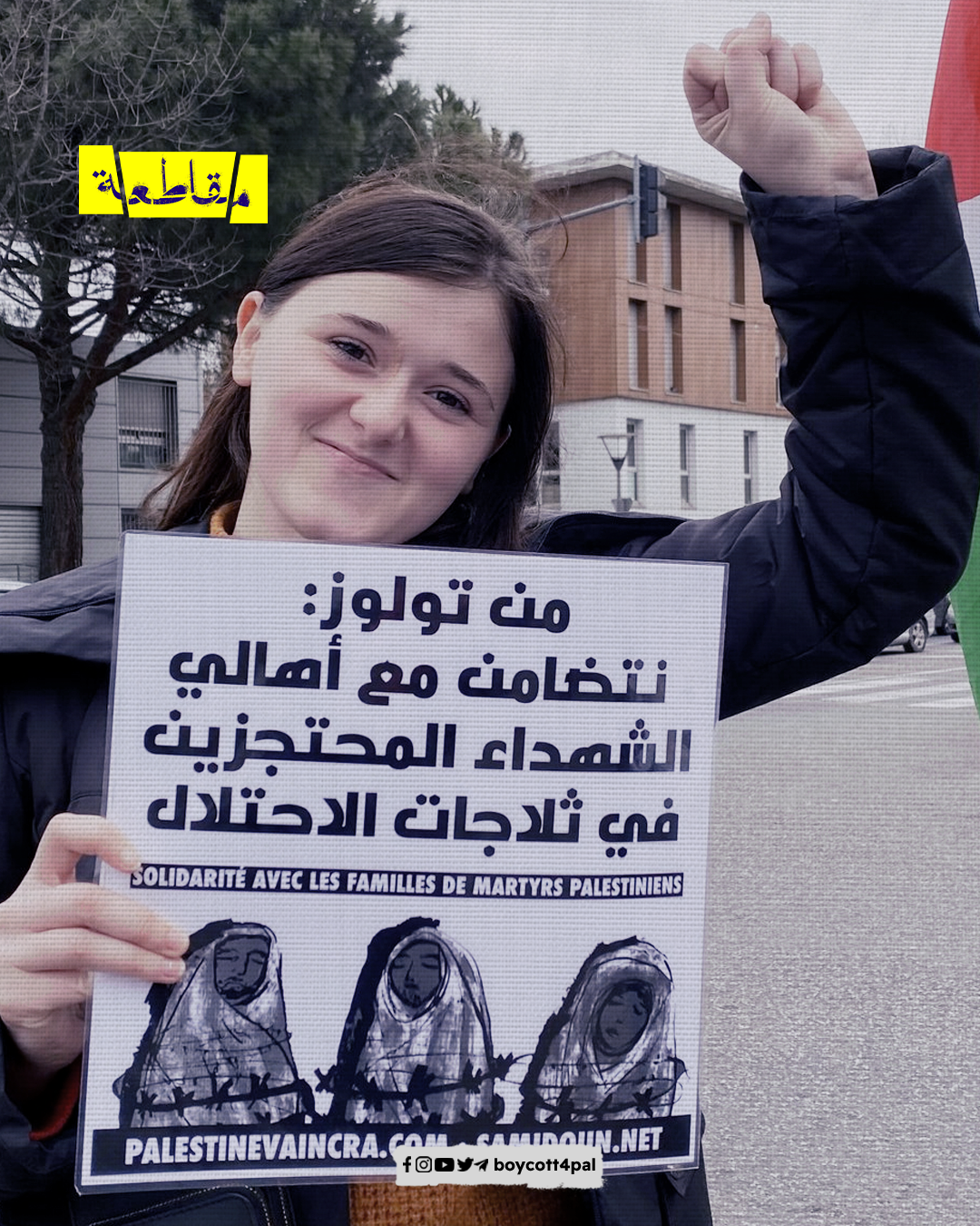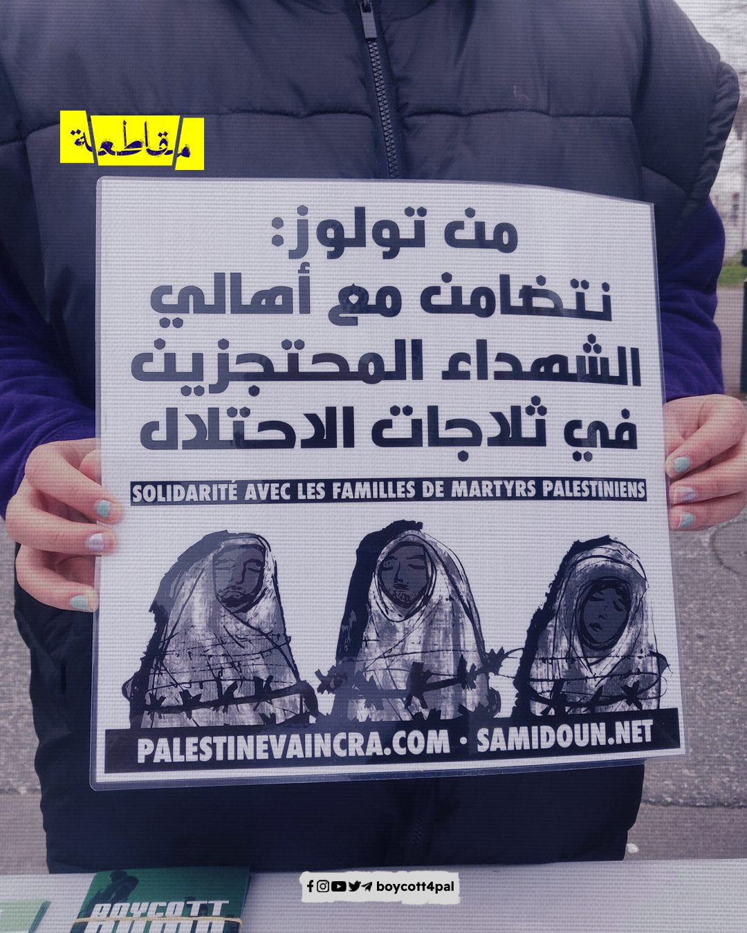نظمت شبكة صامدون طاولة معلومات بجوار مترو "باجاتيل" في مدينة "تولوز" الفرنسية، للمطالبة باستعداة جثامين الشهداء المحتجزة في مقابر الأرقام الإسرائيلية، يذكر أن الاحتلال احتجز منذ مطلع العام الجاري 19 جثمانًا.