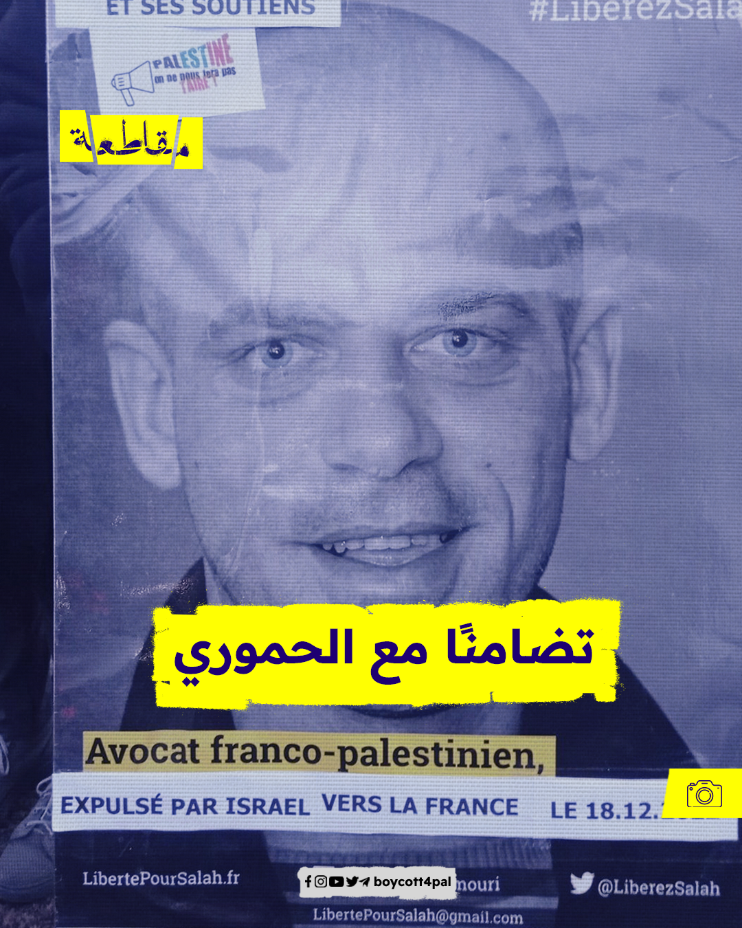 نظمت حركة المقاطعة في فرنسا بالتعاون مع مؤسسات متضامنة مع فلسطين ندوة حوارية استضافت الحقوقي المبعد صلاح الحموري للتعريف بواقع القضية الفلسطينية والانتهاكات بحق الأسرى، الندوة جاءت بمبادرة من بلدية "بوبيني" الفرنسية.