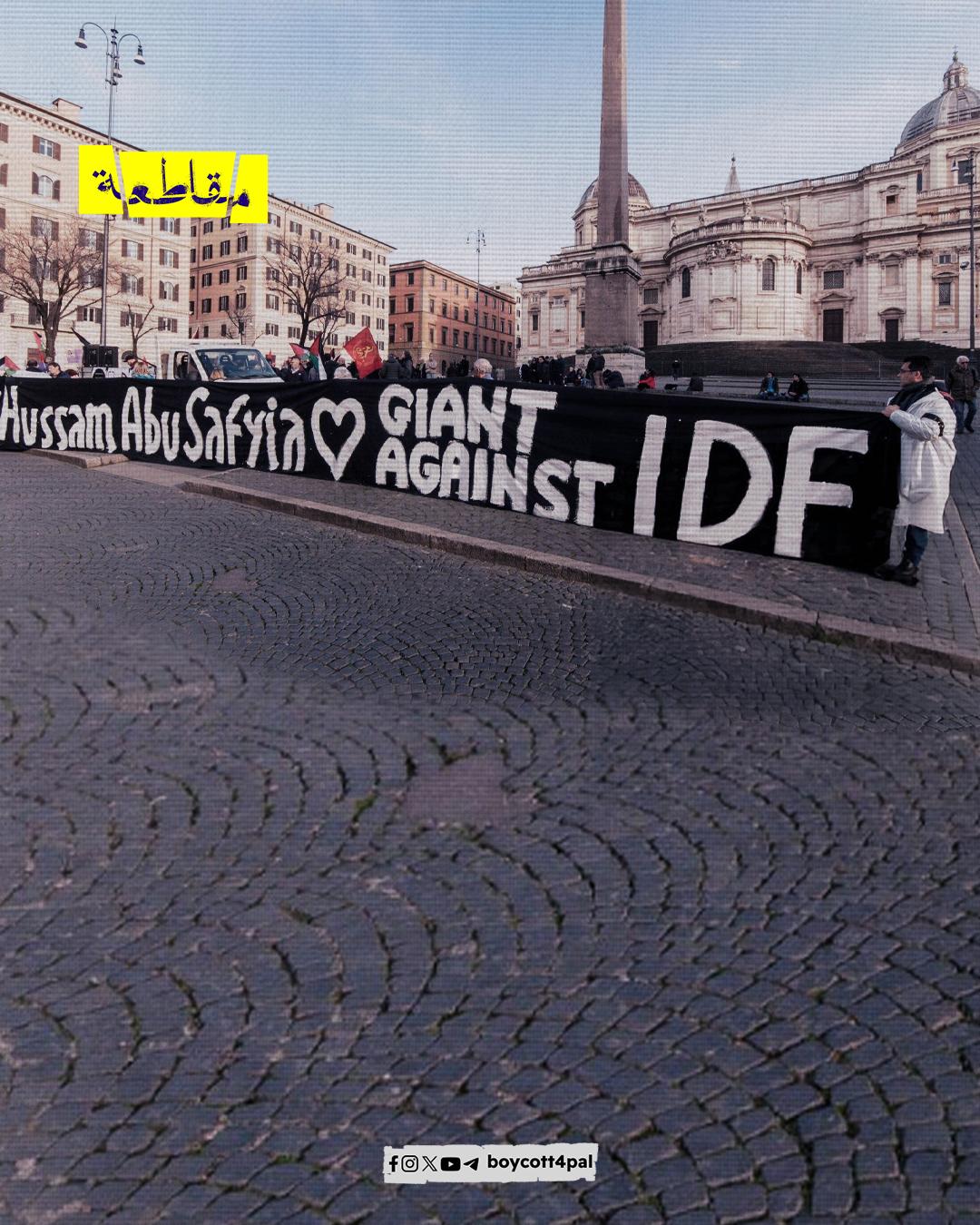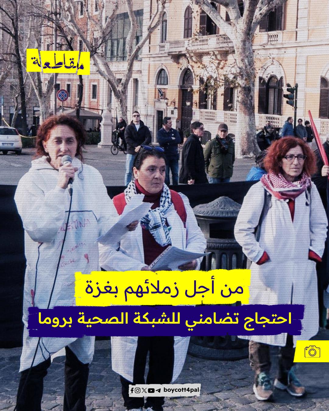 شارك نشطاء مؤيدون لفلسطين في مظاهرة نظمتها "الشبكة الصحية الوطنية من أجل غزة"، في روما، تضامنًا مع العاملين الصحيين الفلسطينيين والشعب الفلسطيني. ورفع المتظاهرون خلالها أعلام فلسطين، ولافتات تندد بقصف المستشفيات واعتقال الأطباء وتطالب بالإفراج عنهم.