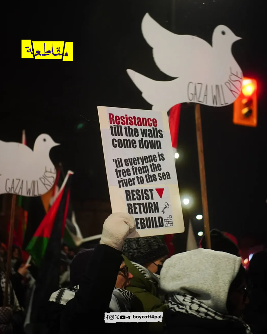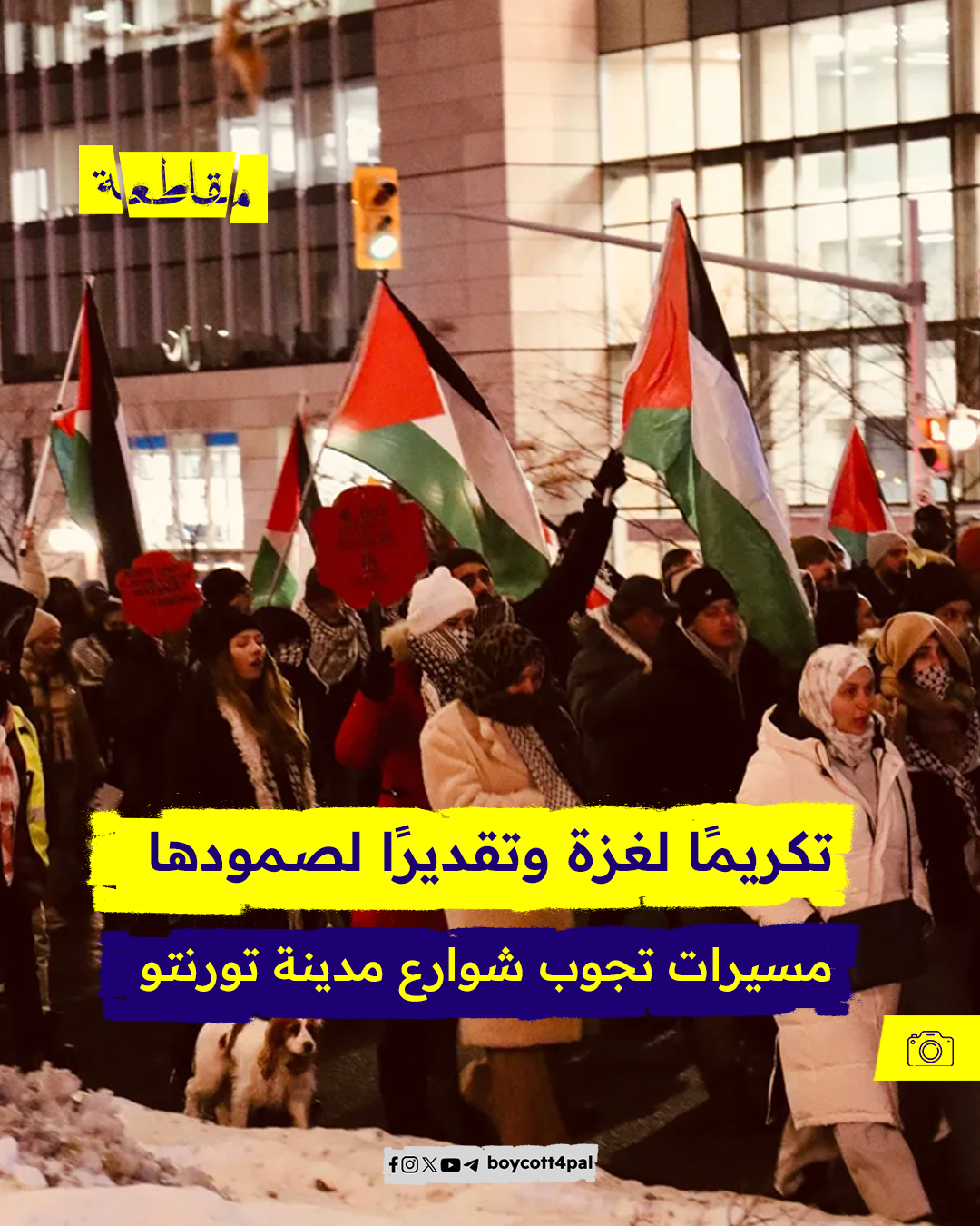 احتشد أنصار فلسطين في شوارع مدينة تورنتو، تكريمًا للفلسطينيين بقطاع غزة، وتقديرًا لصموده وتحديه وتضحياته أمام المجازر الإسرائيلية، ورفع المتظاهرون أعلام فلسطين ولافتات مناهضة للاحتلال وأخرى مطالبة بالحرية لفلسطين ووقف الدعم العسكري لكيان الاحتلال.