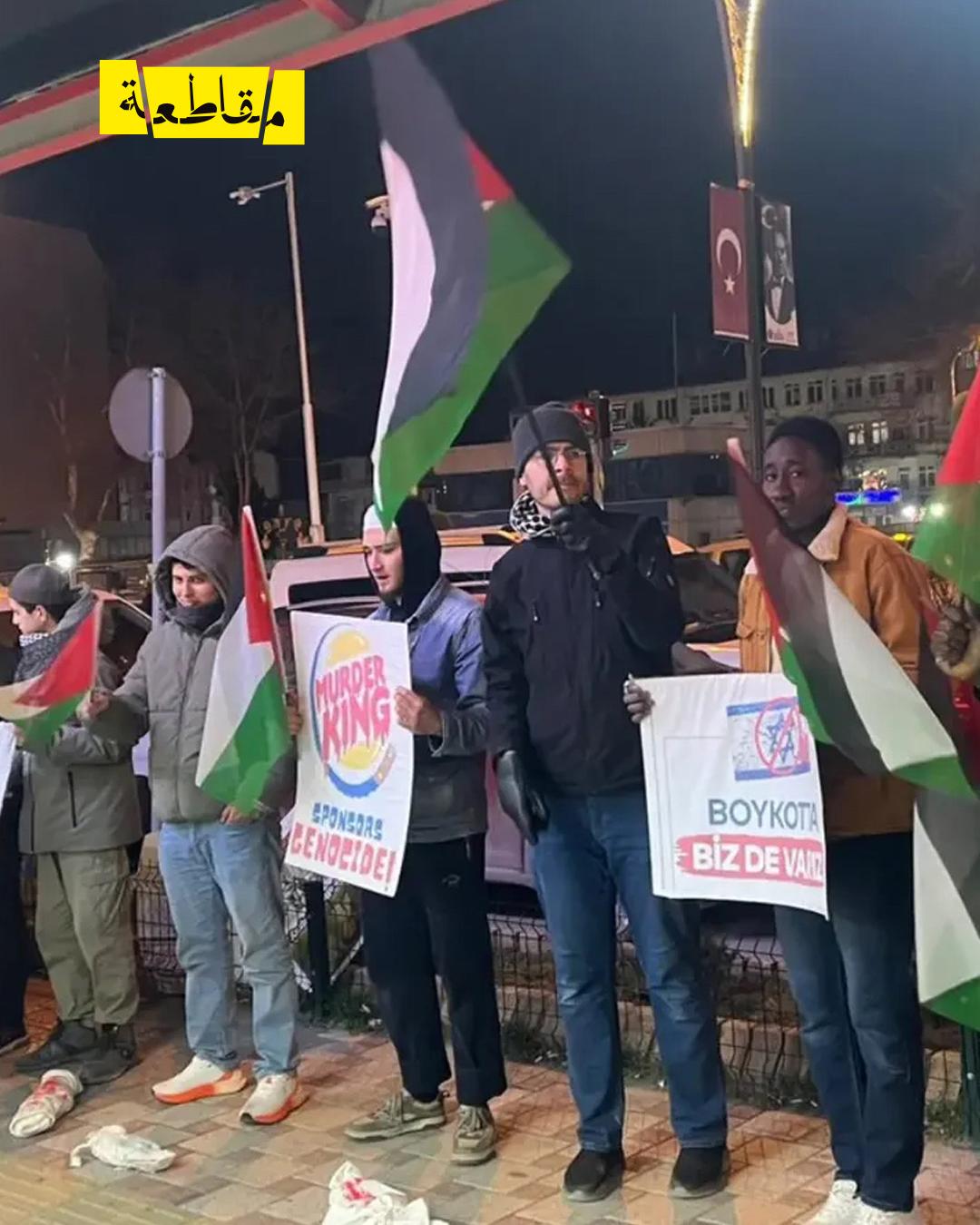 كما يواصل أنصار القضية الفلسطينية في منطقة باشاك شهير، منذ 131 يوم، اعتصامهم أمام أحد فروع "برغر كينغ" للمطالبة بمقاطعة الشركة وإغلاق فرعها في المنطقة، بسبب تقديمها وجبات مجانية لجيش الاحتلال واستثماراتها ضمن اقتصاد آلة الإبادة.