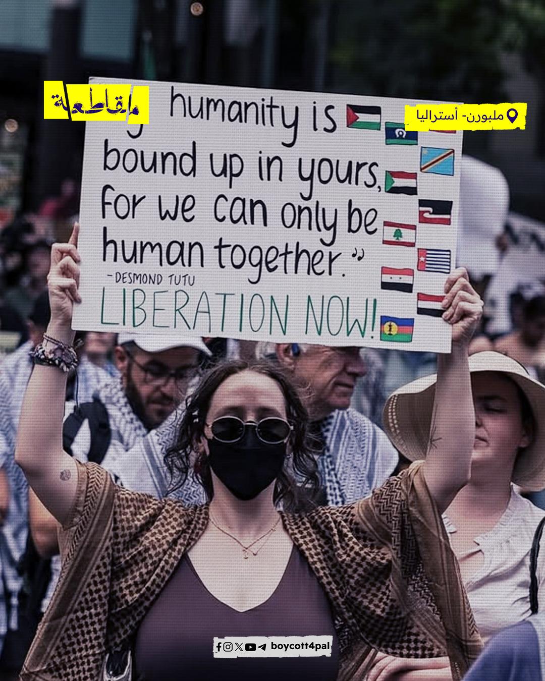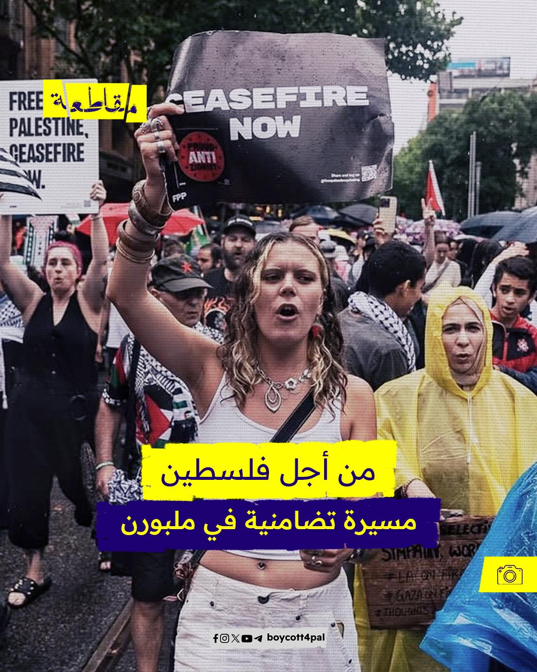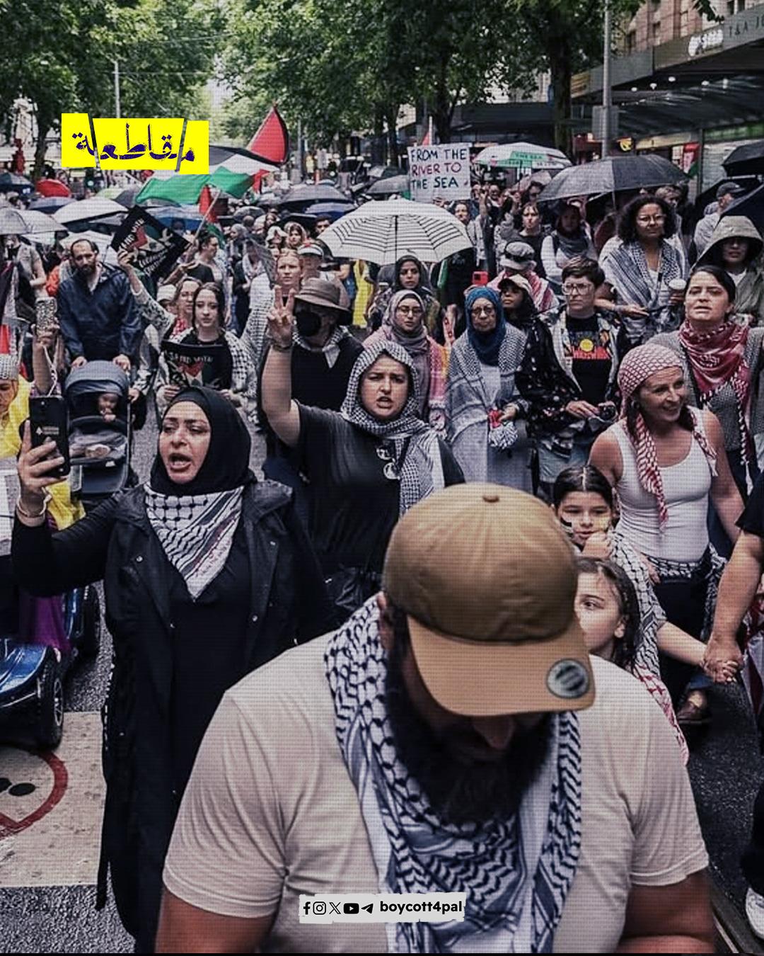 احتشد أنصار فلسطين في مدينة ملبورن الأسترالية دعمًا للشعب الفلسطيني وللتنديد بمجازر الاحتلال المروعة بحق الفلسطينيين بقطاع غزة، وللمطالبة بحظر الأسلحة لكيان الاحتلال، وحمل المتظاهرون لافتات منددة بالعدوان ومطالبة بحرية فلسطين وهتفوا بشعارات مناهضة للاحتلال.