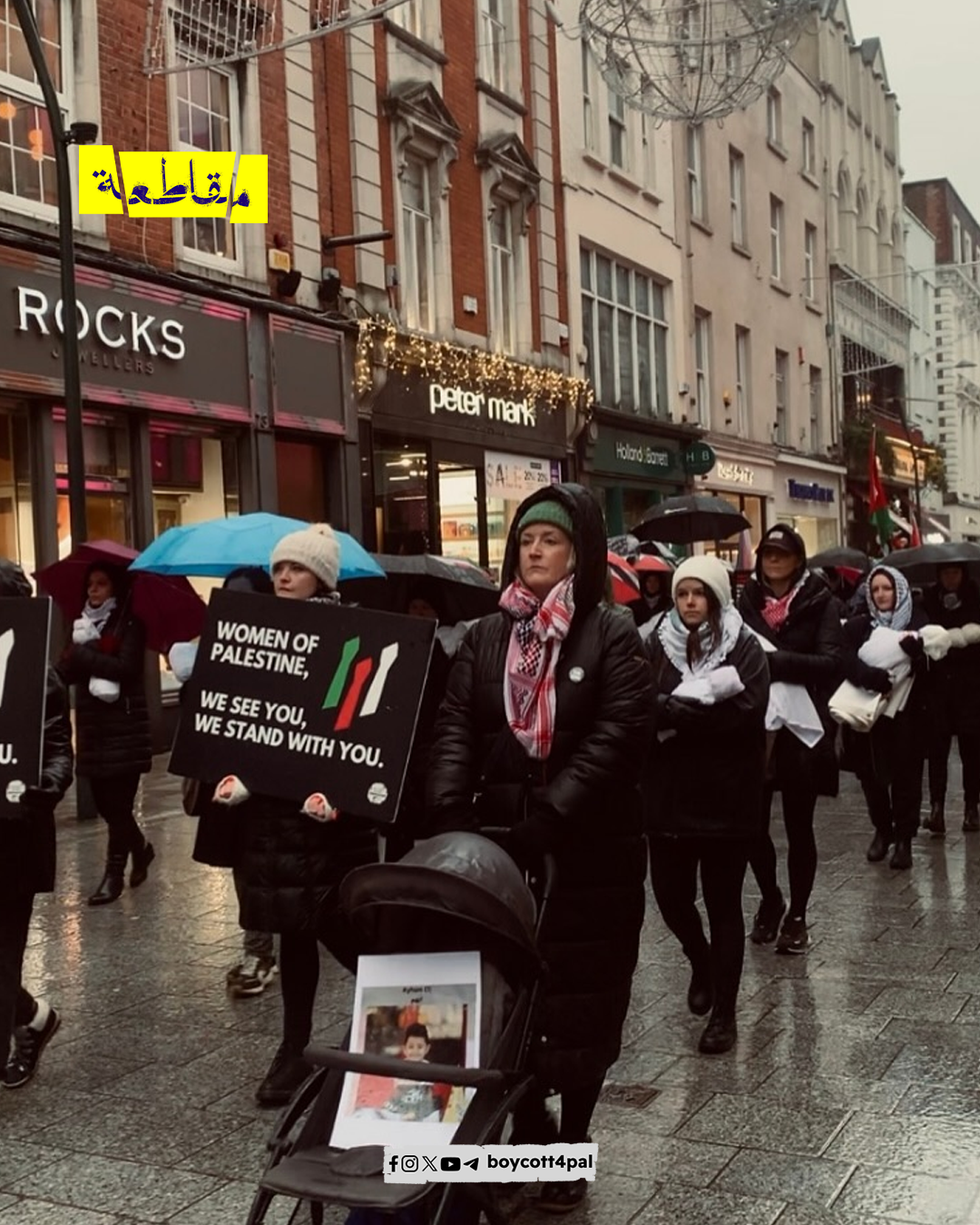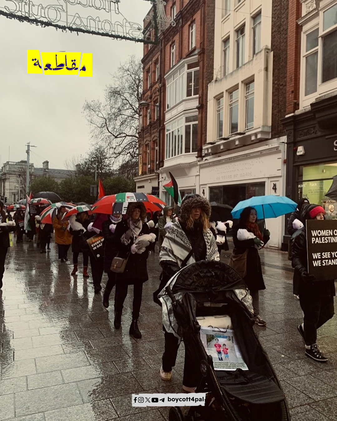 خرجت مجموعة "أمهات ضد الإبادة" في مسيرة صامتة بشارع سوفولك في دبلن تضامنًا مع نساء غزة اللاتي فقدن أطفالهن ويعانين من ويلات الحرب. حملت المشاركات عربات أطفال فارغة وارتدين الملابس السوداء تعبيرًا عن الحزن والفقد. كما رفعن لافتات تضامنية كُتب عليها "نساء فلسطين، نحن نراكم ونقف معكم"، في رسالة دعم قوية للنساء الفلسطينيات.
